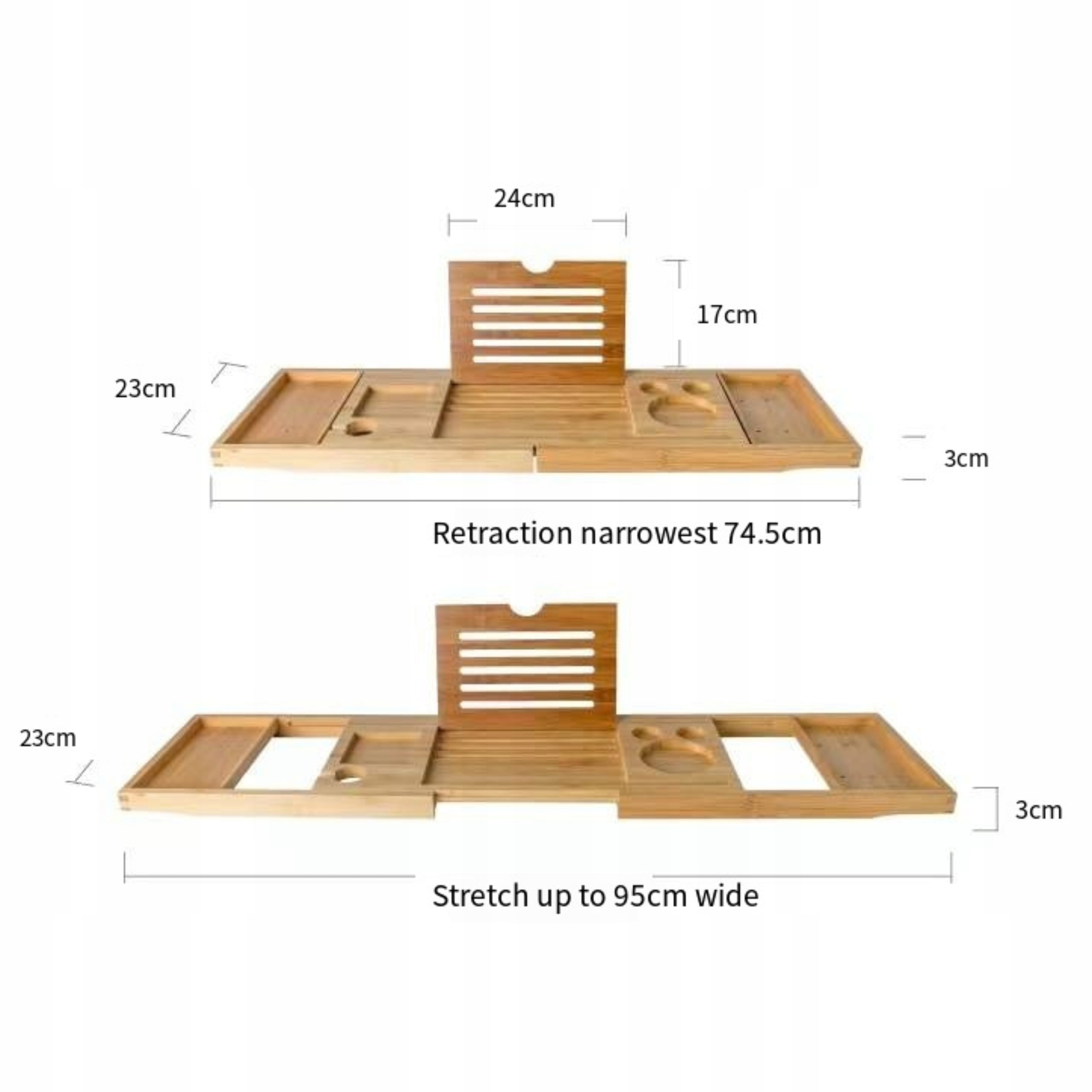 Регульована ширина дозволяє встановити полицю на будь-яку ванну. Діапазон регулювання від 74,5 до 95 см. Завдяки продуманому дизайну полиця підходить для більшості стандартних ванн, забезпечуючи стабільність і комфорт використання.