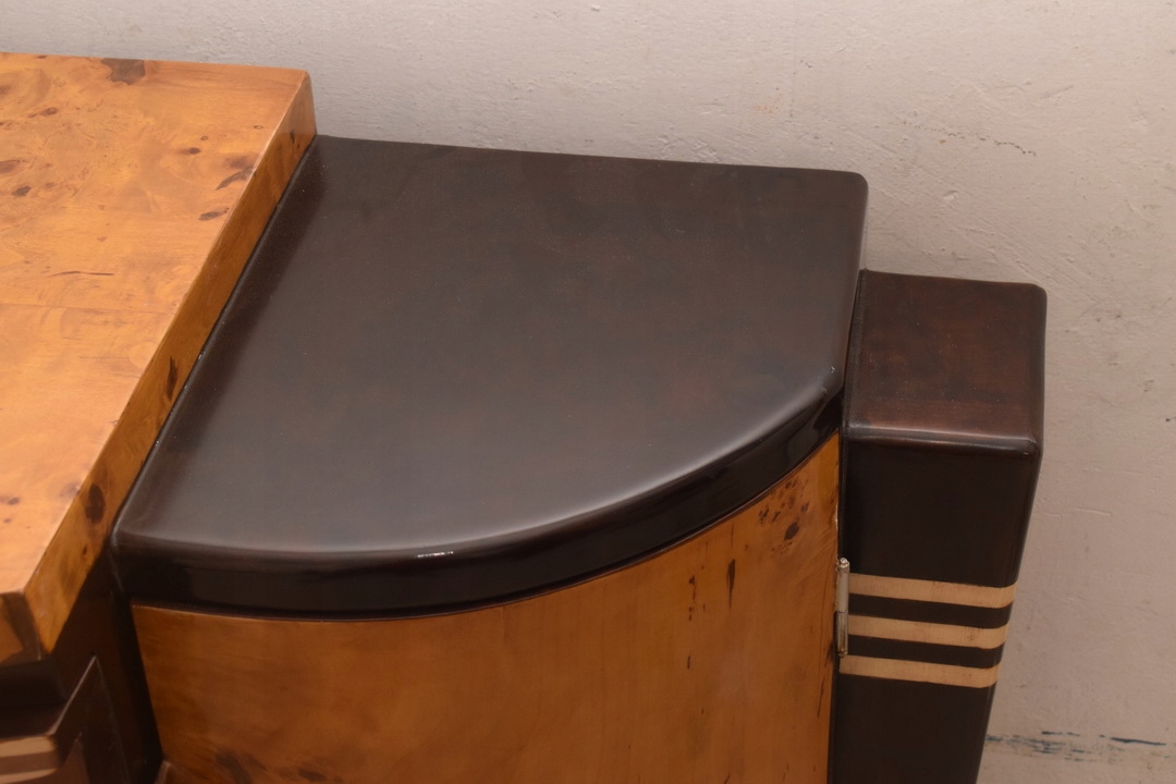 Ця тумба, створена з увагою до найменших деталей, є справжньою роботою. мистецтва. Його унікальний дизайн і вишукане оздоблення відрізняють його від інших меблів. Кожен елемент був ретельно розроблений, щоб створити гармонійну композицію, яка ідеально вписується в естетику стилю арт-деко.