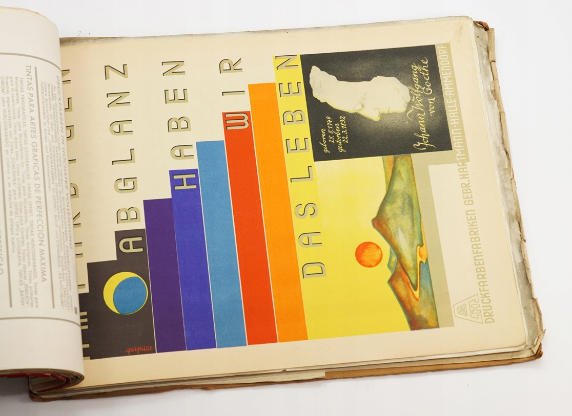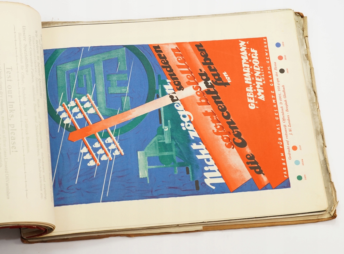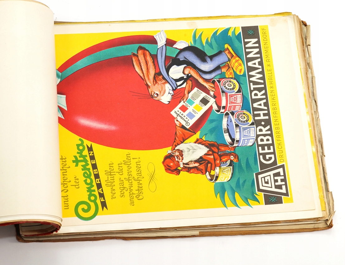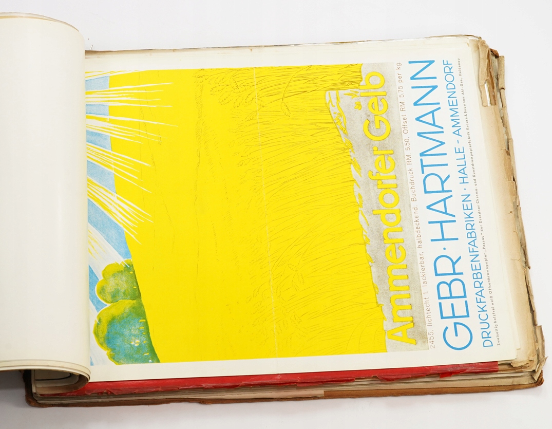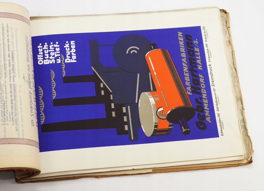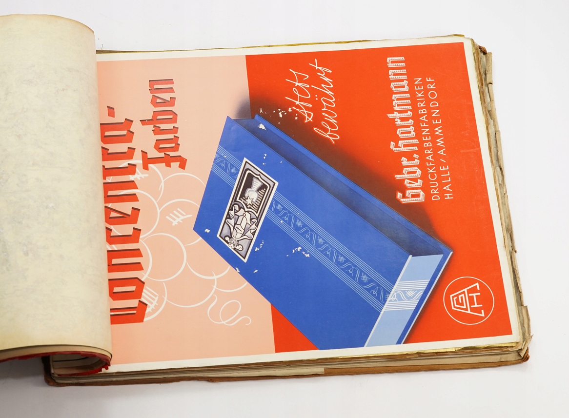 Оригінальне дуже цікаве та дуже рідкісне довоєнне видання, Реклама та ефемери, Довоєнний розширений друкований рекламний шаблон, всередині 119 шаблонів рекламних оголошень, відбитків та листівок, у різних графічних техніках, надрукованих з одного та обох сторін, на різних типи паперу, бл. 32 х 23 см, надруковано у Druckfarbenfabriken, Галле, бл. Рекомендую, оригінальна, дуже рідкісна річ за доступною ціною. Надзвичайно цікавий рідкісний оригінальний предмет. Стан добре видно на фото в описі аукціону.