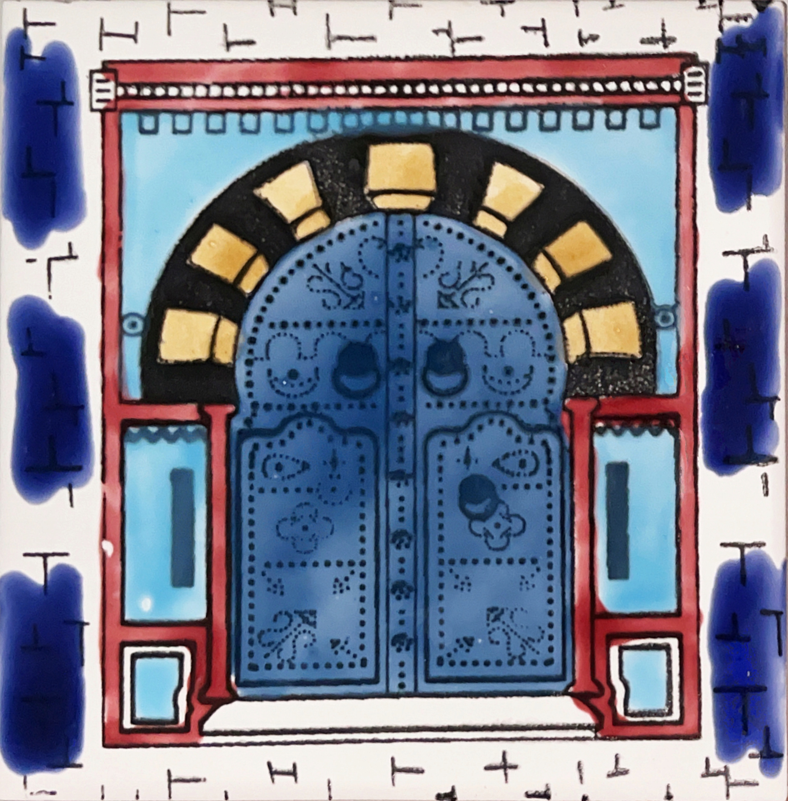 ЧУДА ОРИГІНАЛЬНА АРАБСЬКА ПЛИТКА, РОЗПИСАНА РУЧНО, ЗІ СХІДНО-АРАБСЬКИМ МОТИВОМ ДВЕРЕЙ. ЧУДОВЕ ЗАСТОСУВАННЯ.