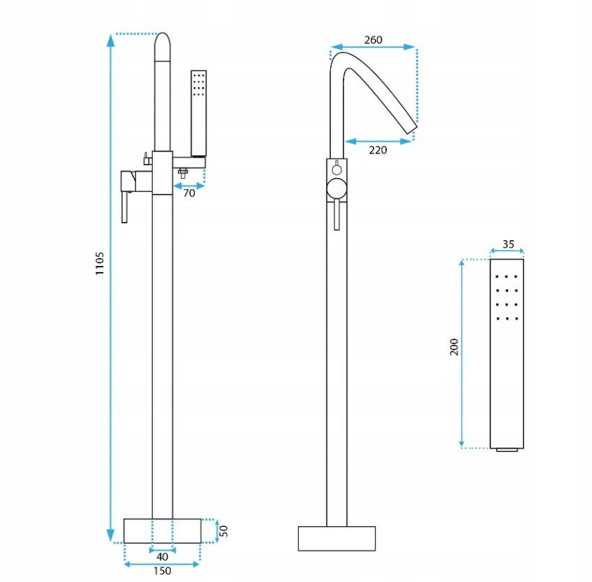 Представляємо вам гарний, надзвичайно функціональний і сучасний змішувач. Це продукт, який ідеально заповнить простір вашої ванної кімнати, зберігаючи бездоганний зовнішній вигляд і естетичність інтер'єру. Змішувач призначений для монтажу на підлозі. Виготовляється з латуні, покритої потрійним шаром. Завдяки спеціальній фазі виробництва він міцний і легко миється.