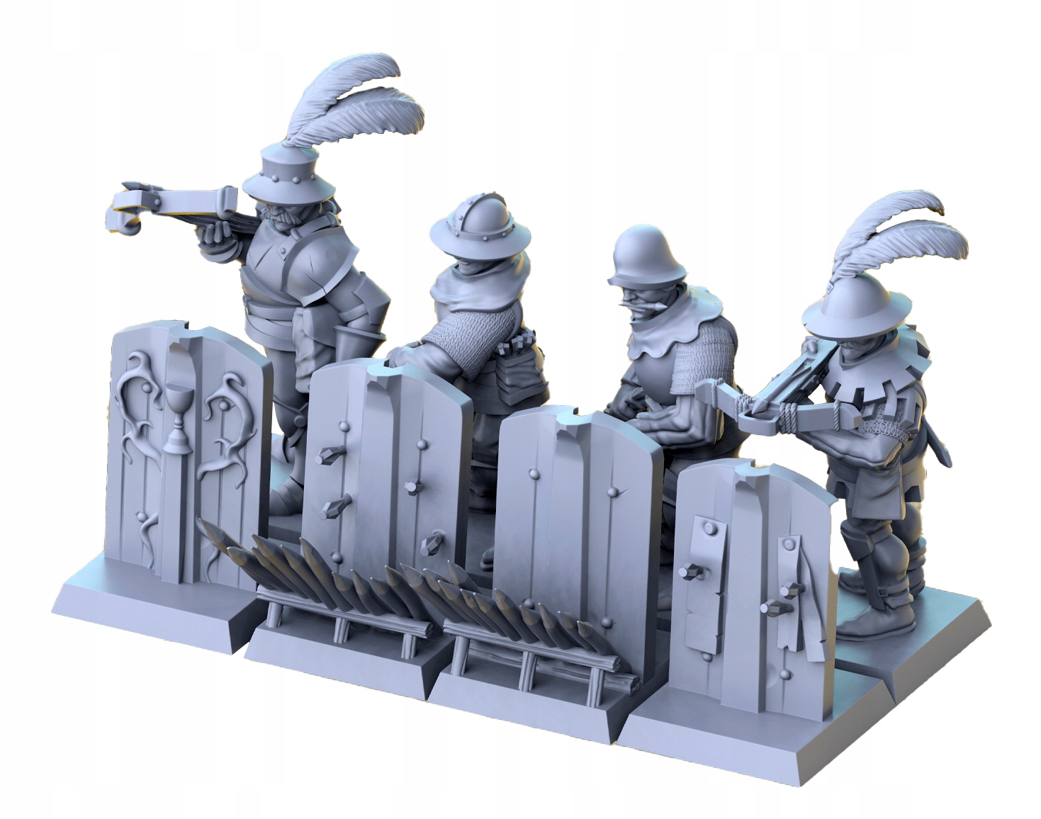 Предметом пропозиції є набір із 4 моделей Pavese Mercenary Crossbowman відMagori Miniatures, надрукованих на 3D-принтері за допомогою SLA техніка.