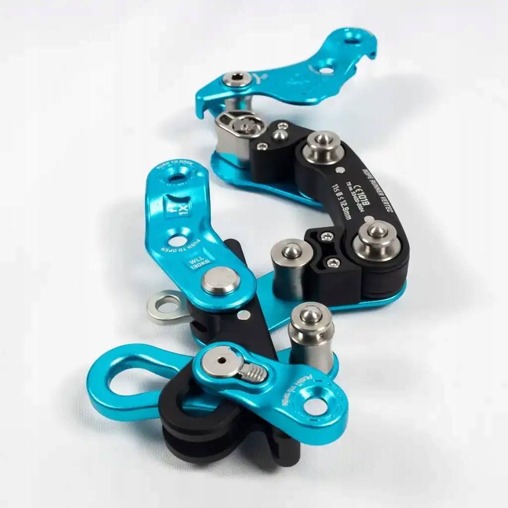 Ще одна помітна відмінність між ROPE RUNNER PRO і ROPE RUNNER VERTEC полягає у виключенні фіксуючих штифтів на користь штифтів, інтегрованих у корпус. Це рішення має багато переваг. Одним з них є простіший і швидший монтаж мотузки - і завдяки повністю відкриваючій конструкції монтаж може відбуватися на будь-якій ділянці мотузки. Також немає ризику, що фіксатор випаде під час відкриття пристрою, як це могло статися в попередніх варіантах. Штифти легше використовувати в рукавичках, і вони розміщені настільки глибоко в тілі, що випадково відкрити їх практично неможливо.