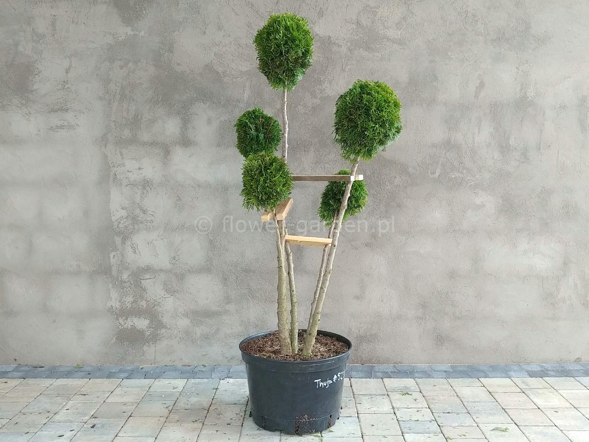 Пропозиція поширюється на кількарічну регулярно обрізану та формувану тую в горщику. Вказана висота — це висота самої рослини без горщика.