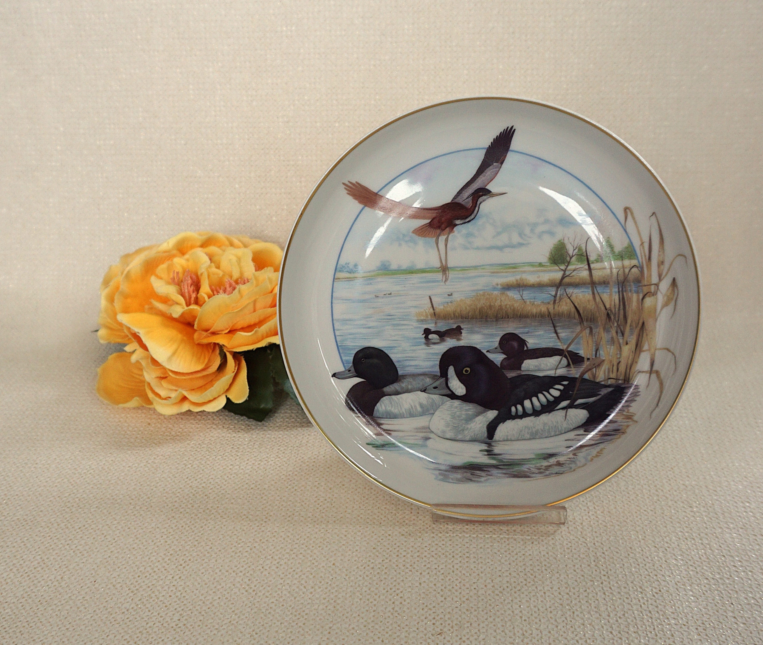 Тарілка з більшої серії Veg des Lebens . Він представляє водних птахів на озері. Тут: Bukecala Clangula, або Gągola.