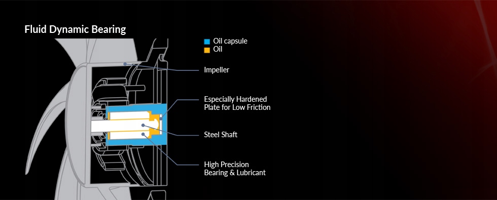 Завдяки комбінації сплаву та мастила, розробленій у Німеччині, тертя в підшипнику зменшено та досягнуто більшої ефективності. У результаті також менше тепла та шуму підшипників, а це означає, що ви можете насолоджуватися довшим терміном служби вентилятора.