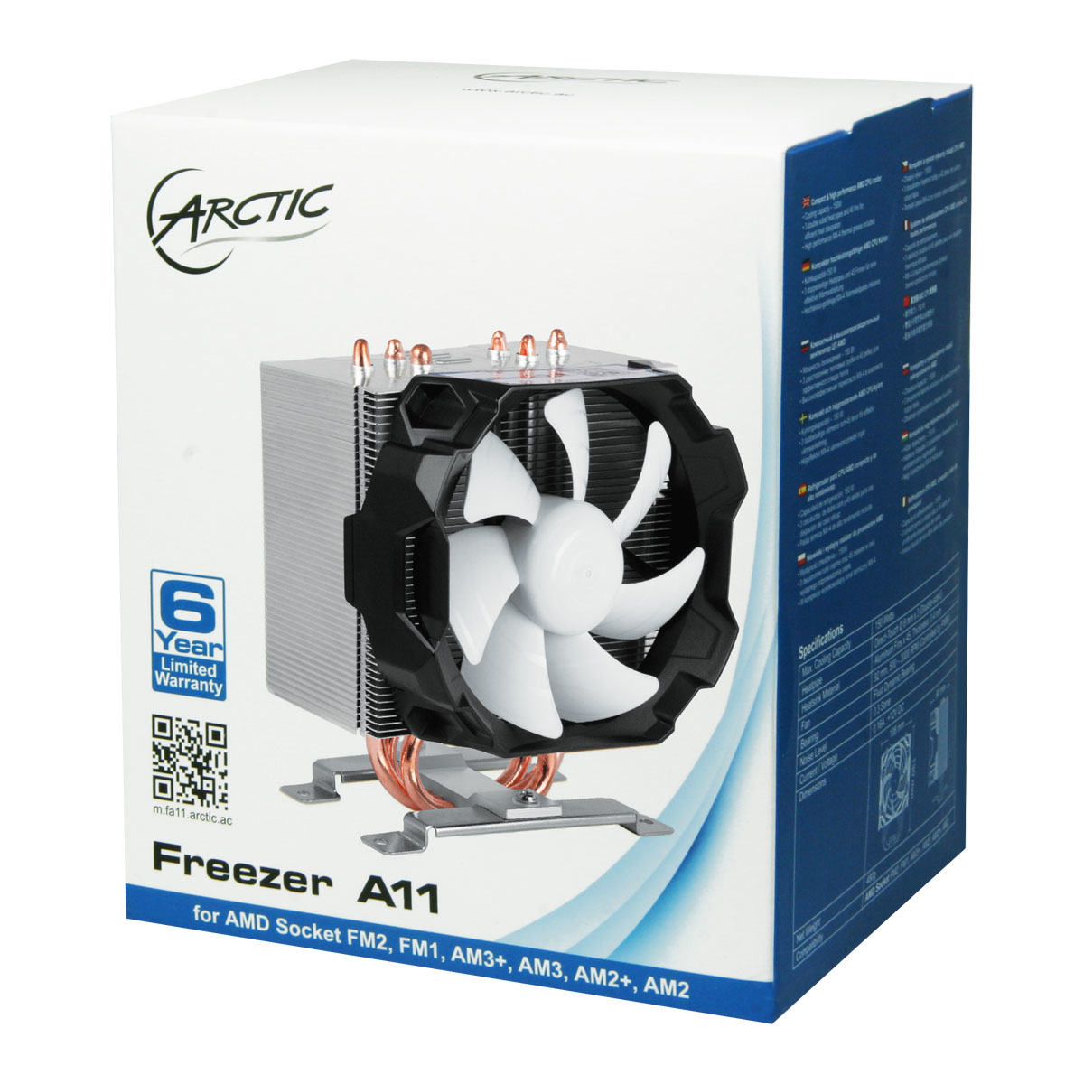Arctic Freezer A11 PWM — це система охолодження процесора від Arctic Cooling. Кулер призначений для роботи з процесорами AMD. Морозильна камера A11 використовує баштовий радіатор, оснащений 92-мм вентилятором. Він обертається зі швидкістю від 500 до 2000 об/хв. Вся конструкція має розміри 100 x 90 x 130 мм і важить 480 грам. Великою перевагою є використання виробником термопасти Arctic MX-4.