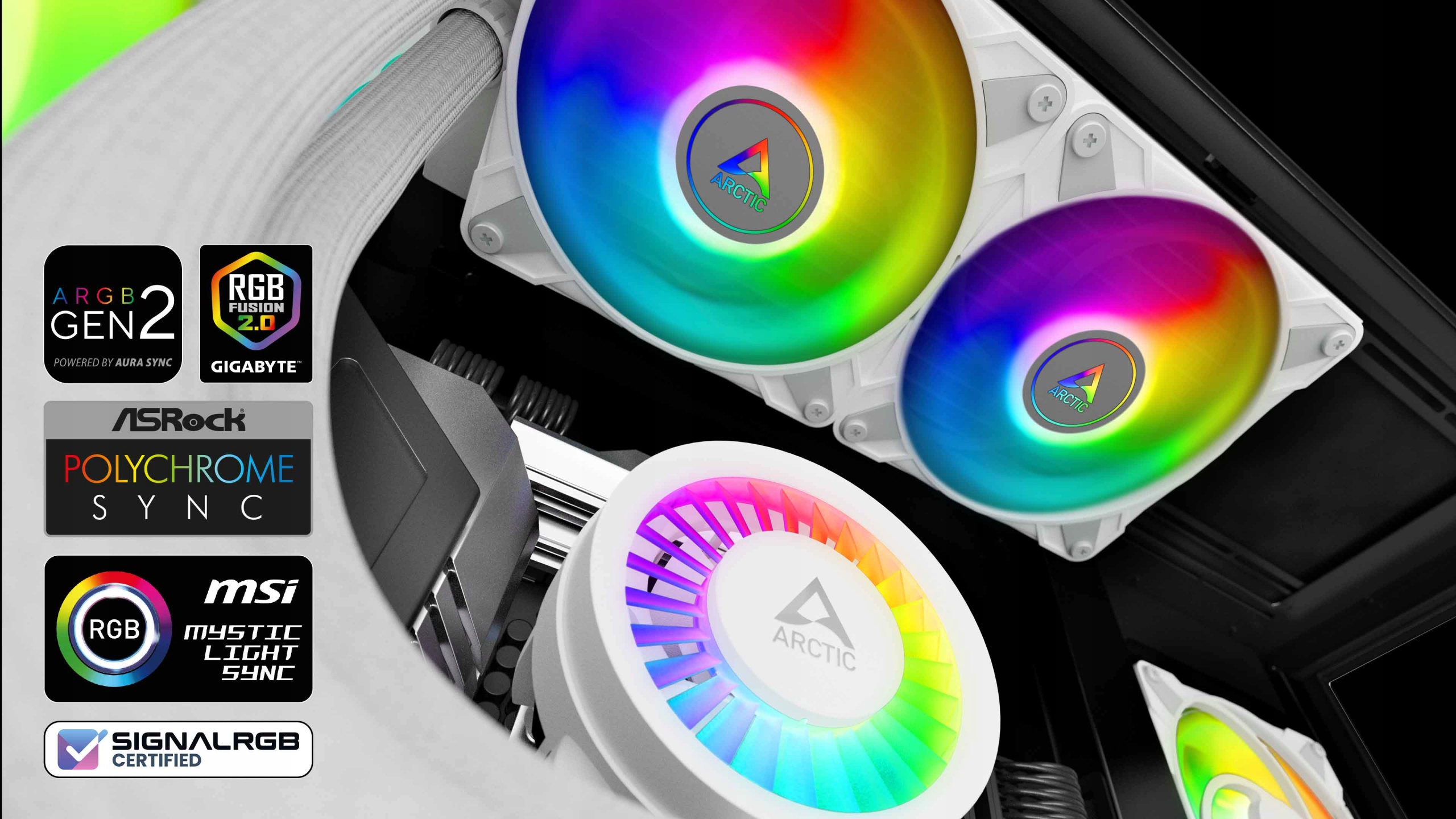 ARCTIC використовує стандартизовані 3-контактні кабелі замість фірмових роз’ємів. Це не тільки забезпечує сумісність з більшістю систем освітлення для материнських плат, корпусів, контролерів і аксесуарів, але також забезпечує програмне керування за допомогою найпопулярніших програм керування. Функція послідовного ланцюга також гарантує, що кожен світлодіод може відображати окремий колір у будь-який час, пропонуючи незліченні можливості комбінування для будь-якого вподобання.