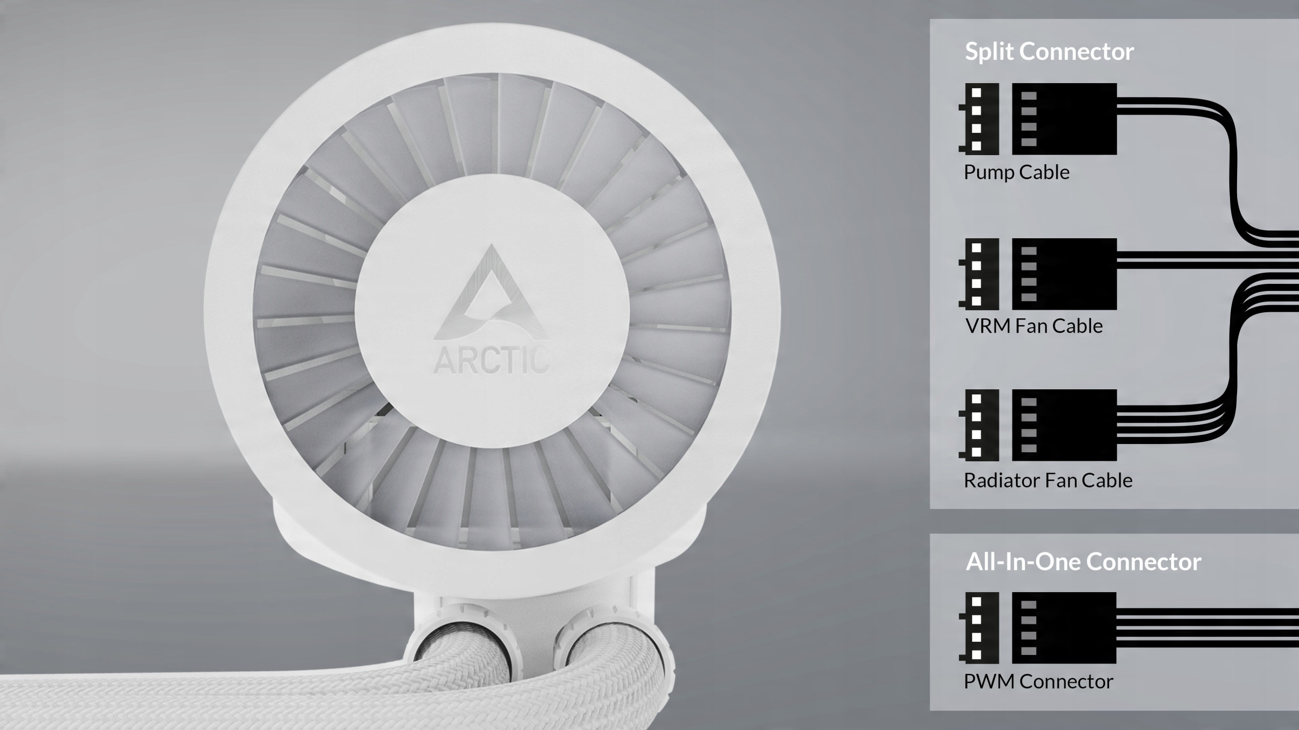 Усе в одному: як і Liquid Freezer II, це дозволяє Ви можете керувати всім блоком за допомогою єдиного підключення, в якому регулюється швидкість вентиляторів радіатора. Це дозволяє легко керувати насосом, VRM і вентиляторами радіатора за допомогою єдиного налаштування ШІМ.