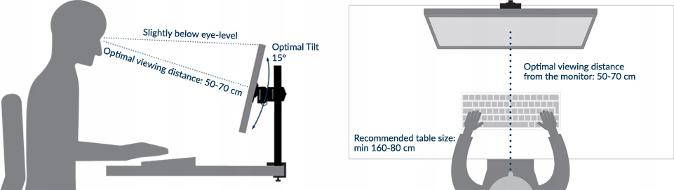 Наші кронштейни монітора регулюються по висоті, що дає змогу легко налаштувати екран у ідеальне ергономічне положення. Верх екрана має бути трохи нижче рівня очей.