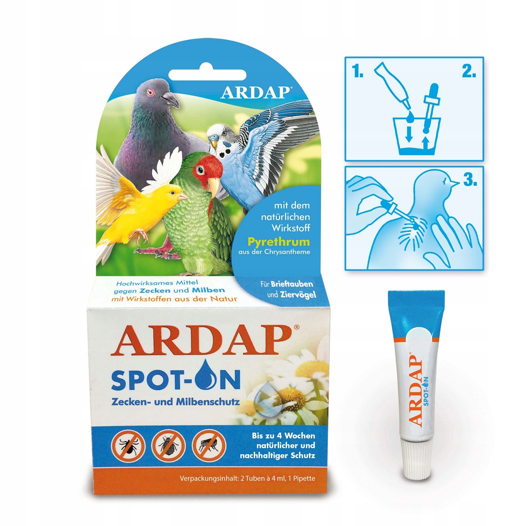 ARDAP SPOT-ON (КРАПЛІ) містить природна діюча речовина «піретрум», отримана з хризантеми. Це є ефективний засіб для зовнішнього застосування тваринам. Дякую тобі ARDAP SPOT-ON забезпечує надійний, природний і тривалий захист проти кліщів, кліщів і бліх. Одноразова програма ARDAP SPOT-ON забезпечує ефективний захист протягом чотирьох тижнів.