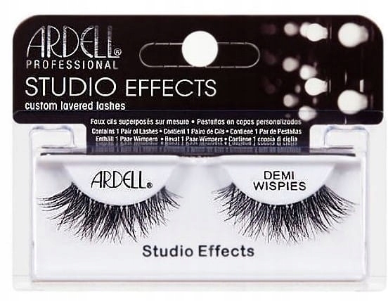 Ardell Studio Effects Demi Wispies — це набір із двох чорних професійних вій із стерилізованого людського волосся, завдяки чому вони забезпечують чудовий ефект. зручність носіння та виразний ефект. Вони розміщені на безбарвній тонкій смужці, непомітній при нанесенні на повіку. Смужка гнучка, тому легко адаптується до лінії росту вій. Водостійка і легка структура вій є їх безперечними перевагами. Вони дають природний, красивий ефект, ще довші, гарно закручені, відповідно густі та м’які. Вії придатні для багаторазового використання, якщо їх правильно накласти та зняти. Вони ідеально доповнюють макіяж і відкривають погляд. Ідеально підходить для щоденного використання та для особливих випадків. Бестселер серед накладних вій!