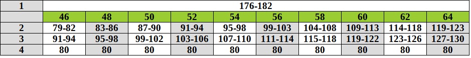 ТАБЛИЦЯ РОЗМІРІВ