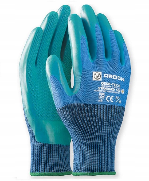 Робочі рукавички Ardon Green Touch виробляються екологічно, без використання кислот, на відміну від традиційних "шорстких" латексних рукавичок. Виготовлений з поліефірної тканини, захоплююча частина занурена в латекс, кислоту. Закінчився гнучким, в'язаним Welt, завдяки якому вони не ковзають з рук під час роботи. Стійкий до стирання та розриву. Еластичний і довговічний. Вони забезпечують гарне зчеплення. Особливо рекомендується для перенесення слизьких деталей. Сертифікований продукт Oeko-Tex® Tex® Standard 100.