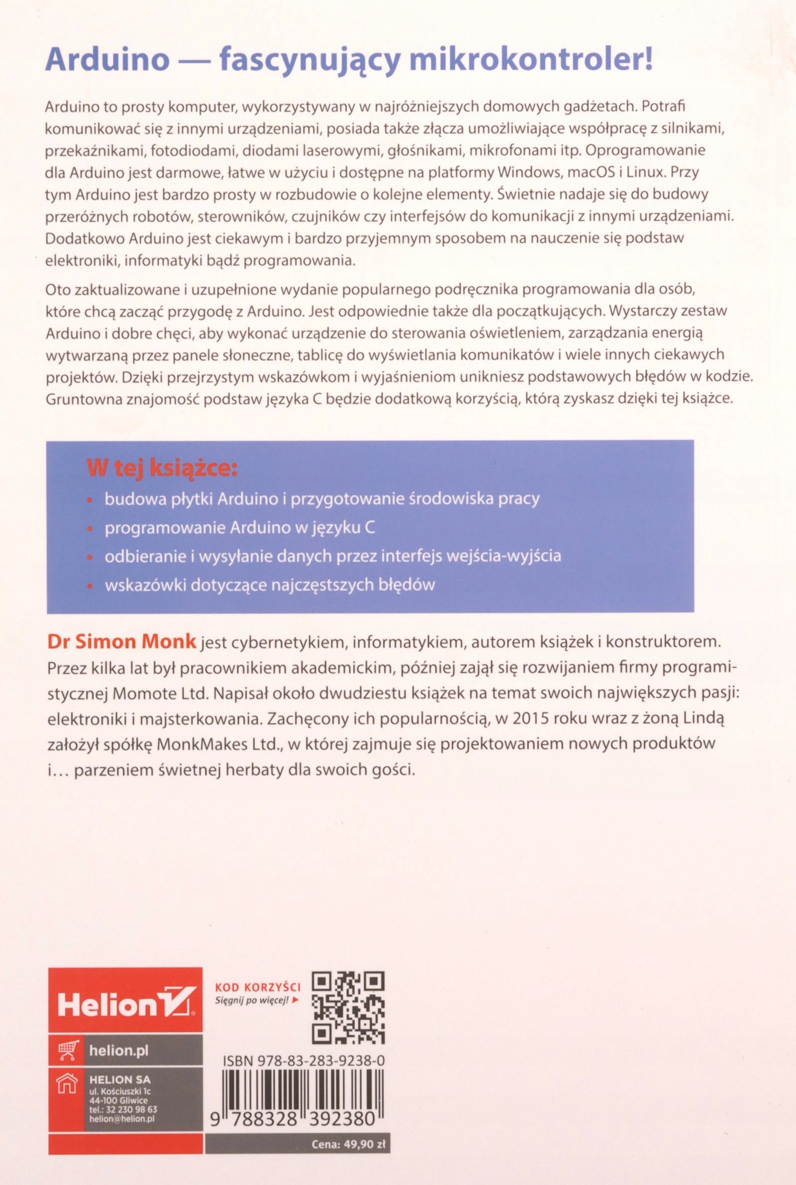 Arduino — це дуже простий комп’ютер, який можна використовувати в різноманітних гаджетах, створених у комфорті вашого власного дому. Він може спілкуватися з комп’ютером, а також має роз’єми для підключення зовнішніх електронних компонентів, таких як двигуни, реле, фотодіоди, лазерні діоди, динаміки, мікрофони тощо. Програмне забезпечення для програмування Arduino просте у використанні та доступне безкоштовно на платформах Windows, Mac і Linux. При всьому цьому Arduino дуже легко розширити додатковими елементами. Завдяки цьому його можна легко використовувати для створення різноманітних роботів, контролерів, датчиків та інтерфейсів для зв’язку з іншими пристроями. Крім того, Arduino — відмінний, цікавий і дуже приємний спосіб навчитися основам електроніки, інформатики чи програмування. Ця книга є ще одним оновленим і доповненим виданням популярного посібника з програмування для людей, які хочуть почати свою пригоду з Arduino. Ви можете використовувати його, навіть якщо ви не знаєте програмування. Усе, що вам потрібно, це набір Arduino та бажання проявити креативність, щоб створити пристрій для керування освітленням, керування енергією, що генерується сонячними батареями, дошку для відображення повідомлень та багато інших цікавих проектів. Завдяки чітким підказкам і поясненням ви незабаром переконаєтеся, що програмування на Arduino — це просте й приємне заняття, а помилок, які є результатом неправильного коду, можна легко уникнути. Досконале знання основ мови C буде додатковою перевагою, яку ви отримаєте від цієї книги.