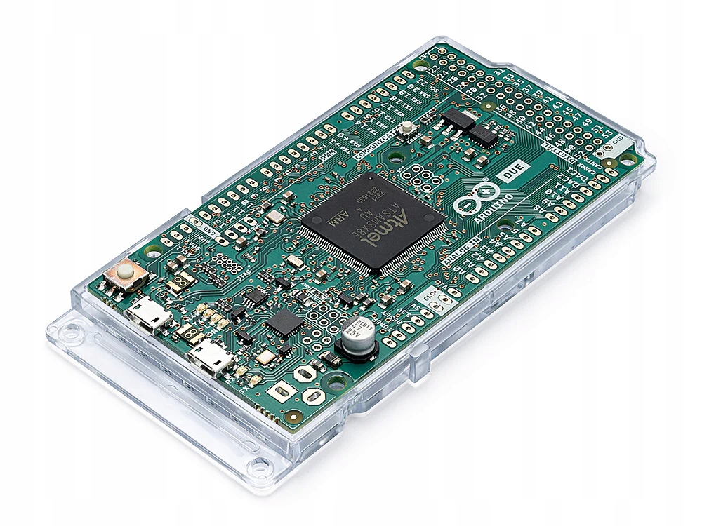 Arduino Due – це вдосконалена плата на основі мікроконтролера Atmel SAM3X8E ARM Cortex-M3 . Він має 54 контакти цифрового входу/виводу , з яких 12 можна використовувати як ШІМ-виходи та 12 аналогових входів . Крім того, він оснащений 4 (послідовними) портами UART , тактовою частотою 84 МГц , з'єднанням USB OTG і 2 перетворювачами ЦАП b >(цифрово-аналоговий). Він також пропонує 2 інтерфейси TWI (I2C), роз’єм живлення, інтерфейс SPI, JTAG, кнопку скидання та кнопку скидання.