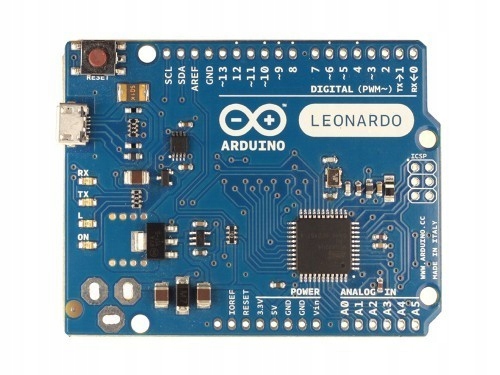 Arduino Leonardo — плата розробки з мікроконтролером ATmega32u4. Є 20 цифрових входів/виходів (7 з них можна використовувати для генерації сигналів ШІМ, 12 з них можуть працювати як аналогові входи), кристал 16 МГц, роз'єм micro USB, роз'єм живлення, роз'єм програмування ICSP і скидання кнопку. Плата містить усе необхідне для початку роботи, просто підключіть джерело живлення або USB-кабель і почніть розважатися!