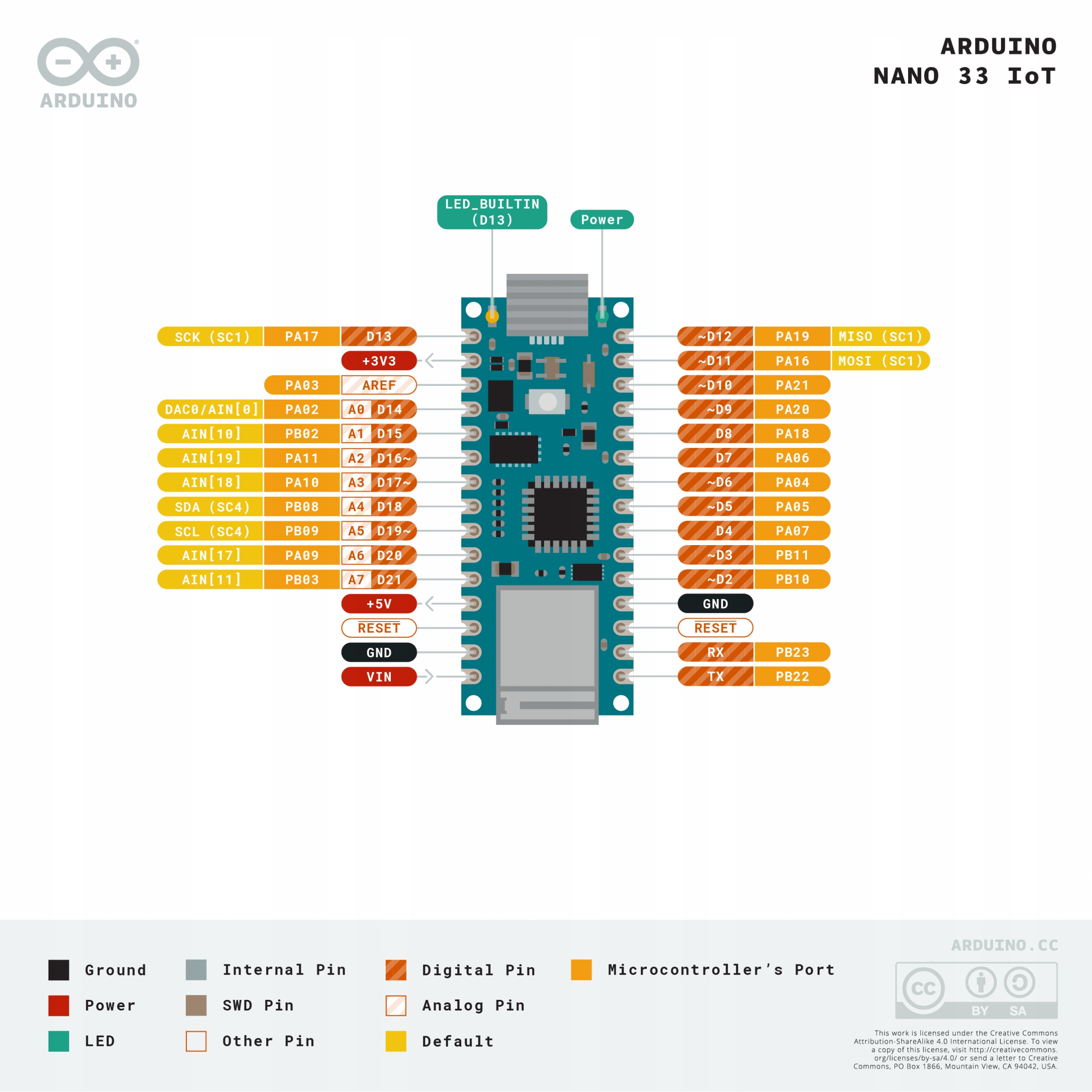Важлива інформація: Arduino® Nano 33 IoT не підтримує сигнали 5 В на своїх контактах.