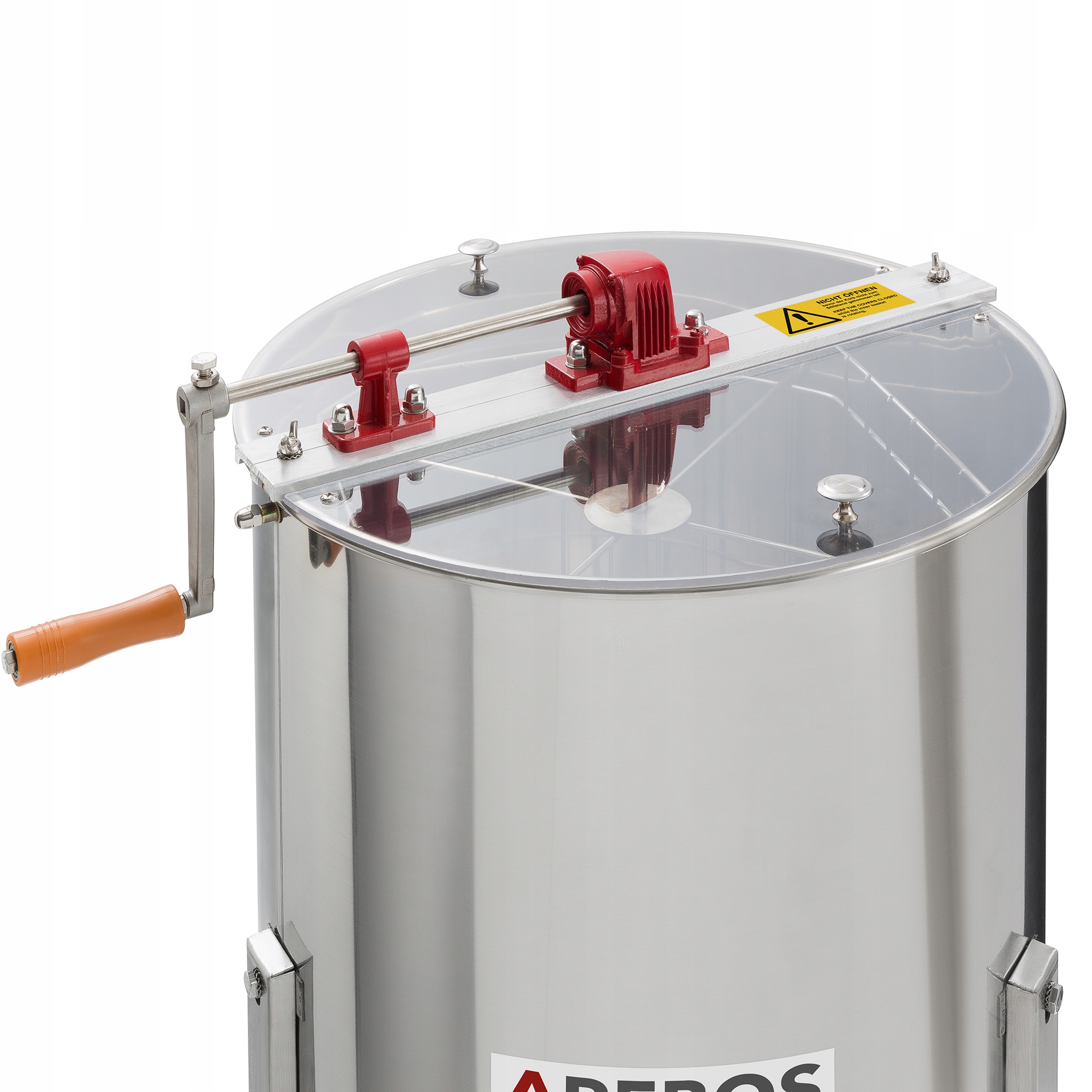 Кришка з оргскла, що складається з 2 частин, захищає мед від забруднення під час віджиму, забезпечуючи прозорість для моніторингу процесу віджиму. Це дозволяє пасічнику уважно стежити за станом меду, не знімаючи кришки.