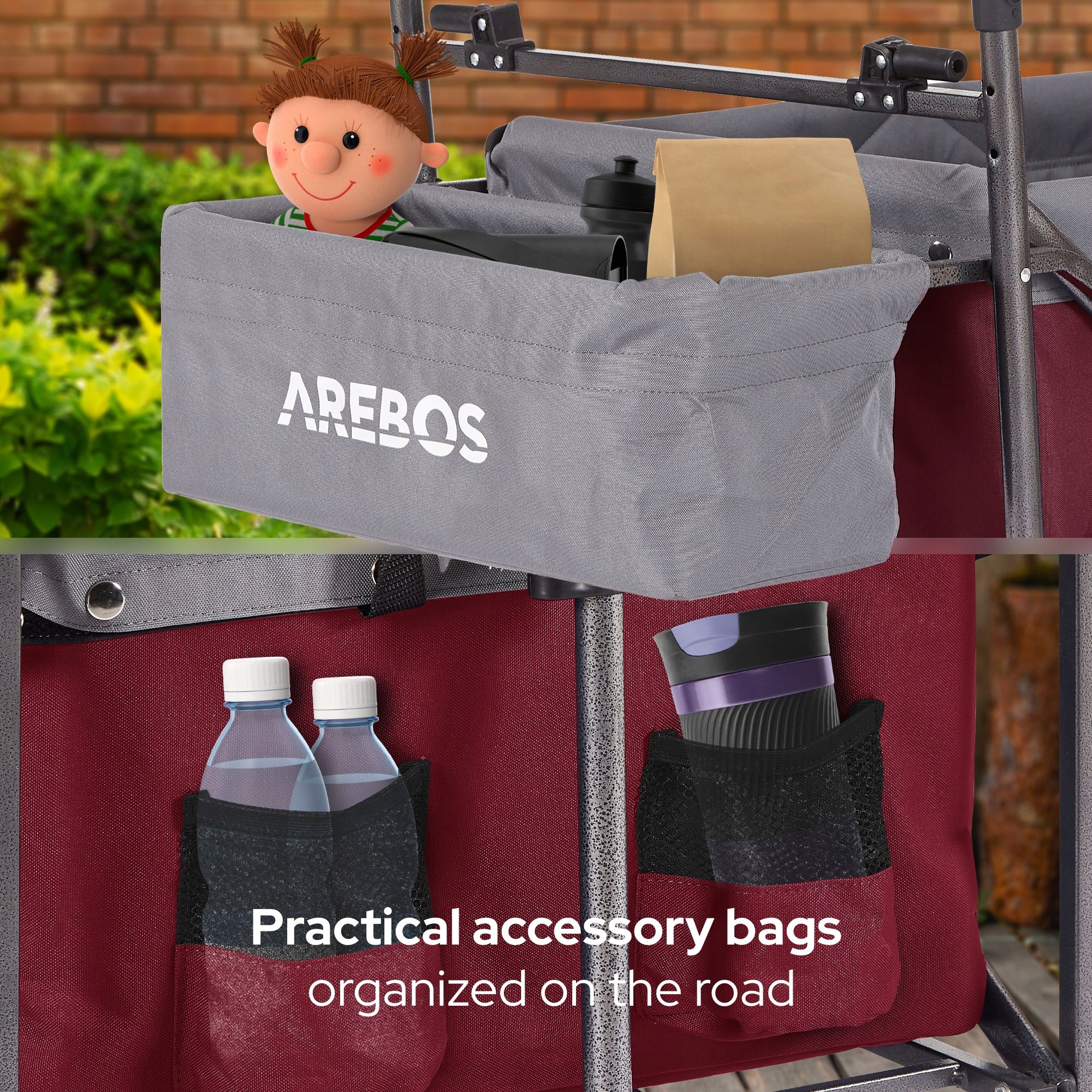 [комфорт та функціональність] Ручна візка Arebos виготовлена з жорсткого -абразивного нейлону 600d Оксфорд і пропонує захист від прямого сонячного світла, дощу та бруду. Всі частини тканини видаляються і можуть бути промиті, що спрощує очищення та догляд за коляскою та сприяє довговічності продукту.