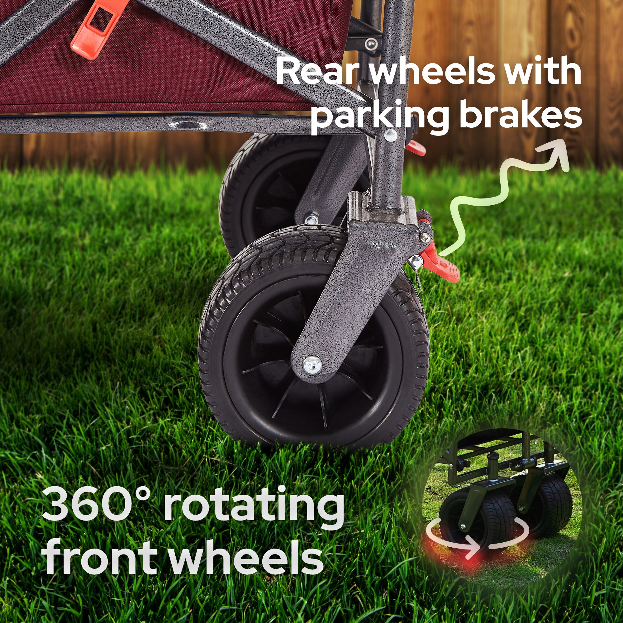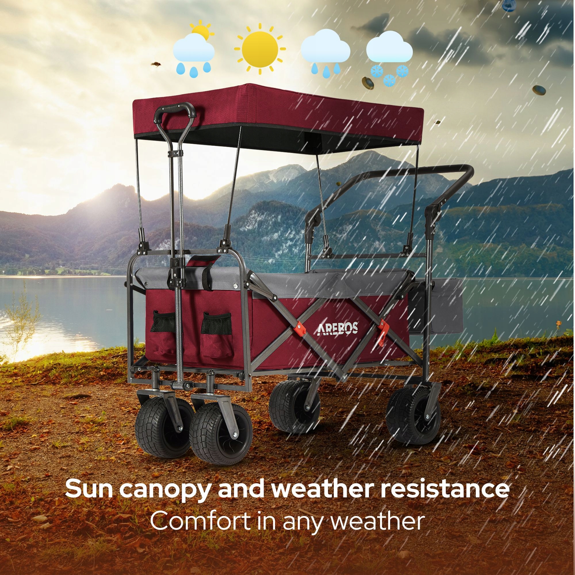 Лукс -ручний візок Arebos адаптований для перенесення великих навантажень до 100 кг. Ця велика вантажопідйомність робить її ідеальною для різних застосувань, від сімейних результатів до садівництва та спортивних подій, і дозволяє носити все необхідне в комфорті.