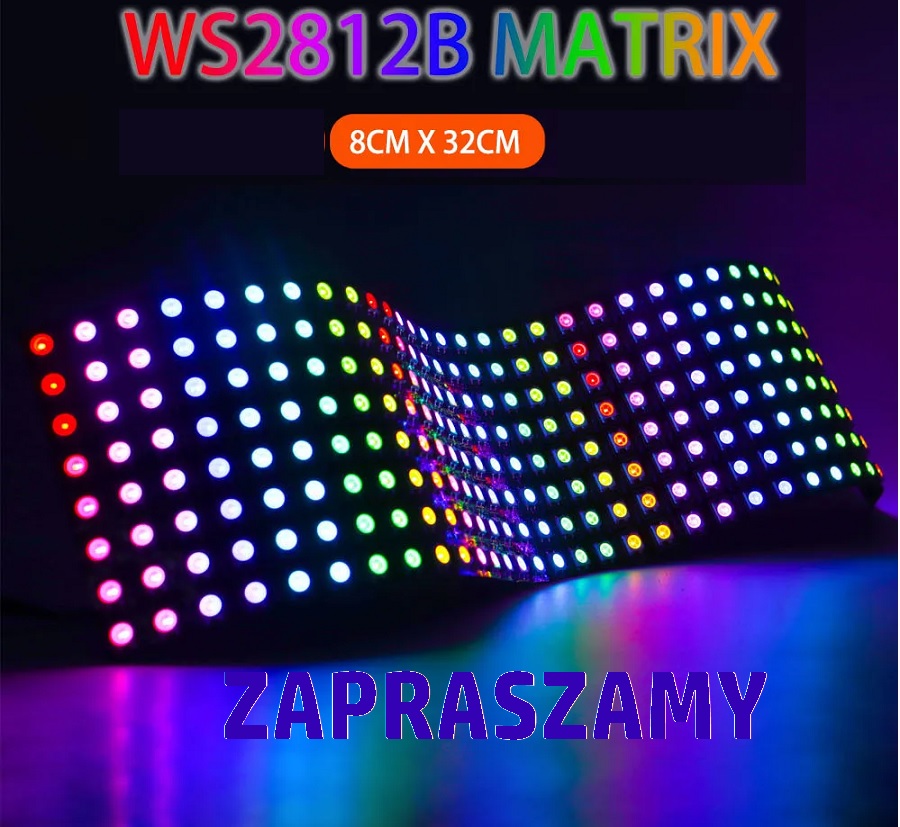 МАТРИЦЯ - ПАНЕЛЬ WS2812B 8 x 32 см. індивідуально адресовані пікселі, загальна кількість 256 пікселів, цифрова гнучка світлодіодна панель, яскраві кольори, освітлення DC5 V