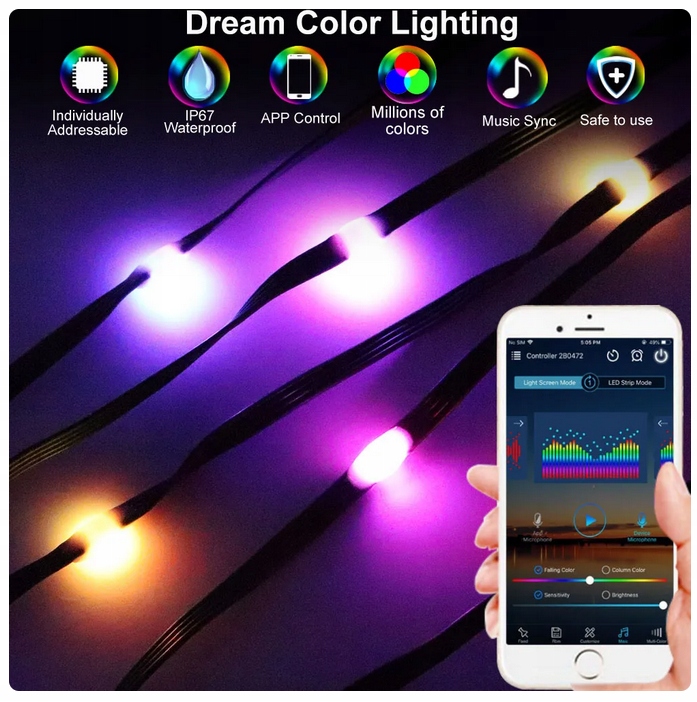 Завдяки адресованим діодам кожен піксель може світитися різним кольором що дає необмежені можливості!