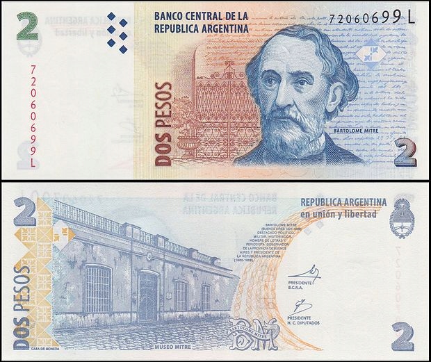 АРГЕНТИНА, 2 ПЕСО (2002), серія L, вибір 352(6)