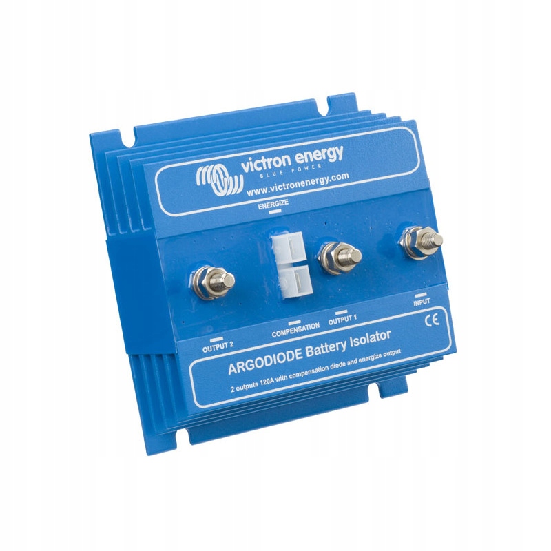Діодний ізолятор акумулятора ARGO 80 2AC від голландської компанії Victron Energy дозволяє заряджати дві різні батареї (готельну та моторну) за допомогою одного генератора енергії, наприклад, автомобільного генератора. Це рішення дозволяє заряджати дві незалежні батареї, але захистить від можливості розрядки батареї в моторному відсіку разом із розрядом батареї готелю. На практиці це означає, що при зарядці акумуляторів батарея в моторному відсіку буде постійно заповнена і не розряджатиметься, а готельна батарея може працювати циклічно і постійно підзаряджатися від сонячних батарей. Протягом цього часу акумулятор у моторному відсіку залишається від’єднаним, оскільки він повністю заряджений. Крім того, розряд акумулятора в моторному відсіку не впливає на розряд акумулятора готелю.