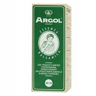 ARGOL® ESSENZA BALSAMICA - це препарат рослинного походження, в якому активними речовинами є добірні ефірні олії, виділені з рослин, і ментол, виділений з олії м'яти перцевої. Він був виготовлений відповідно до фармакопейних описів есенції кармеліту - рослинного лікарського засобу, який використовувався з 1611 року до наших днів, згідно з Handbuch der Pharmazeutischen Praxis, Berlin 1880. Він містить інгредієнти есенції кармеліту та додатково ефірні олії чебрецю, м'яти та ментолу. . Цей рецепт відповідає принципам сучасної фітотерапії інфекційних захворювань, підтвердженим клінічними та амбулаторними дослідженнями, і містить: три олії з групи п’яти олій з відомою, найсильнішою антипатогенною дією, тобто олії кориці, гвоздики та чебрецю, три олії. олії, дія яких виявляється в місці, ураженому мікроорганізмами, тобто олії лимона, м’яти та коріандру, а також дві олії та окремий інгредієнт із підтримуючою, загальнозаспокійливою, розслаблюючою та м’якою місцевою анестезуючою дією: меліса, булава та натуральний ментол. Поєднання олії чебрецю з олією лимона також підвищує антимікробну дію суміші проти патогенних мікроорганізмів.