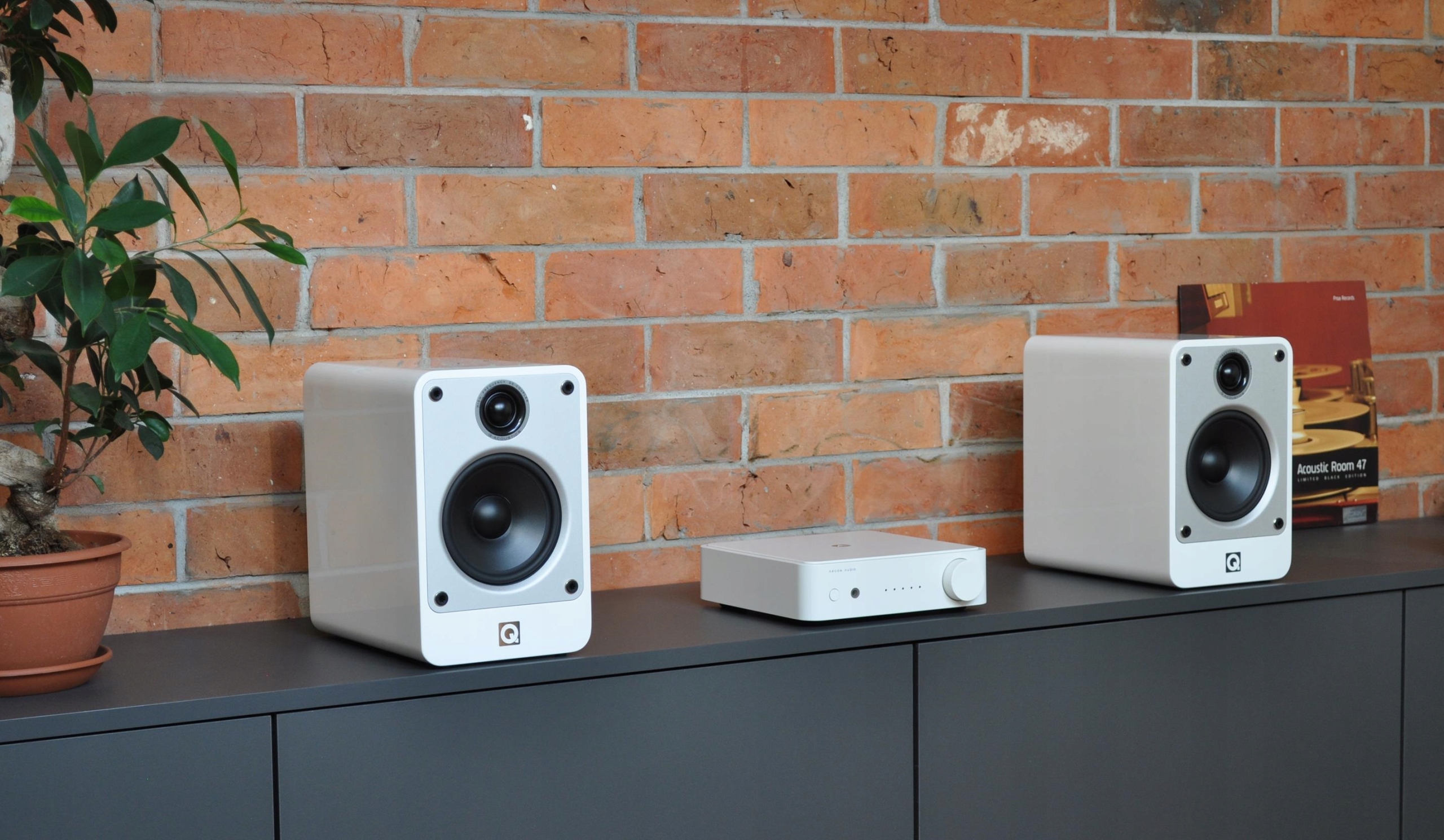 Argon Audio SA1 у білому кольорі + Q Acoustic Concept 20 White HGL/білий, з глянцевим лаком + Atlas 2x 2,00 мм² акустичних кабелів.
