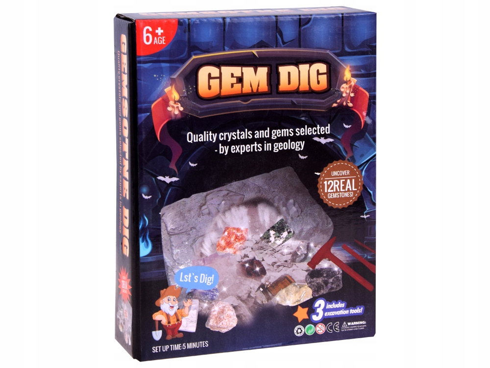 Саморобна іграшка, яка імітує археологічні розкопки в новій, унікальній та привабливій формі. Завдання дослідника — за допомогою молотка, долота та щітки видобути дорогоцінні камені, заховані в гіпсовому зліпку.