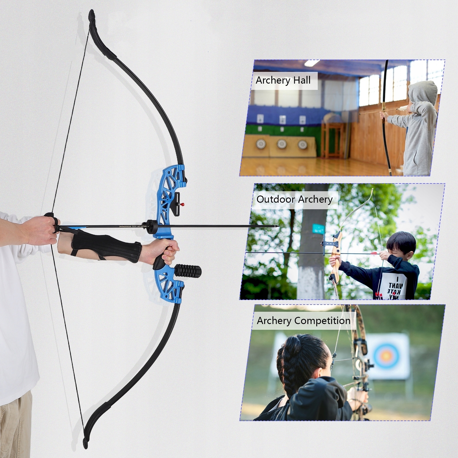 Набір арки та 53 "знімка для стрільби з лука повторює подарунок для початківців, набір Longbow, подарункові іграшки для гри на свіжому повітрі, 6 постріл , обличчя, щоб грати у дворі 2>