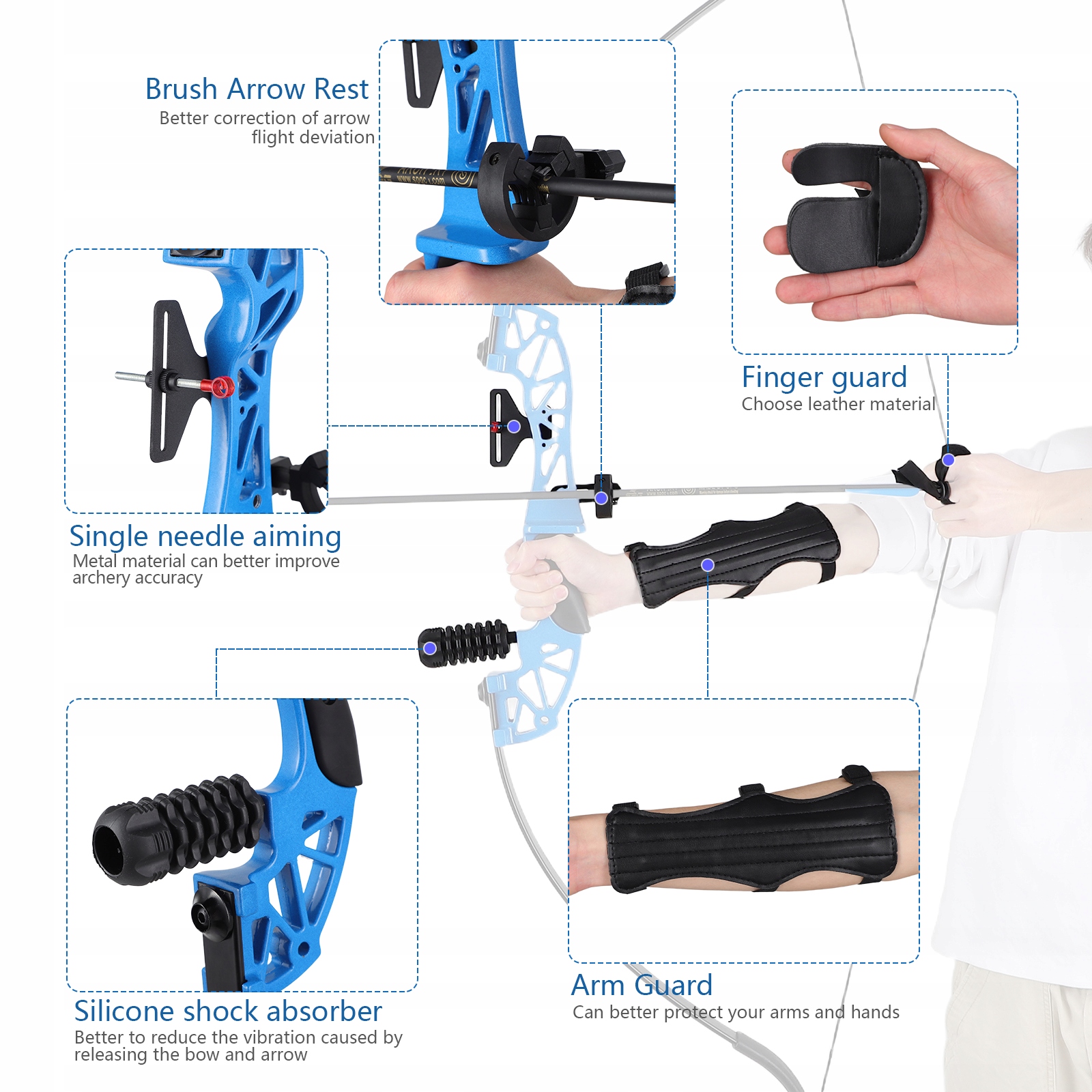 Цей набір повторних арк був розроблений для легкої установки та приємний для любителів спортивних спорту. Арка має елегантну і сильну конструкцію, що робить її ідеальною як для початківців, так і для досвідчених лучників. Набір дугової дуги містить необхідні аксесуари, завдяки якому у вас є все необхідне для успішного сеансу з лука.