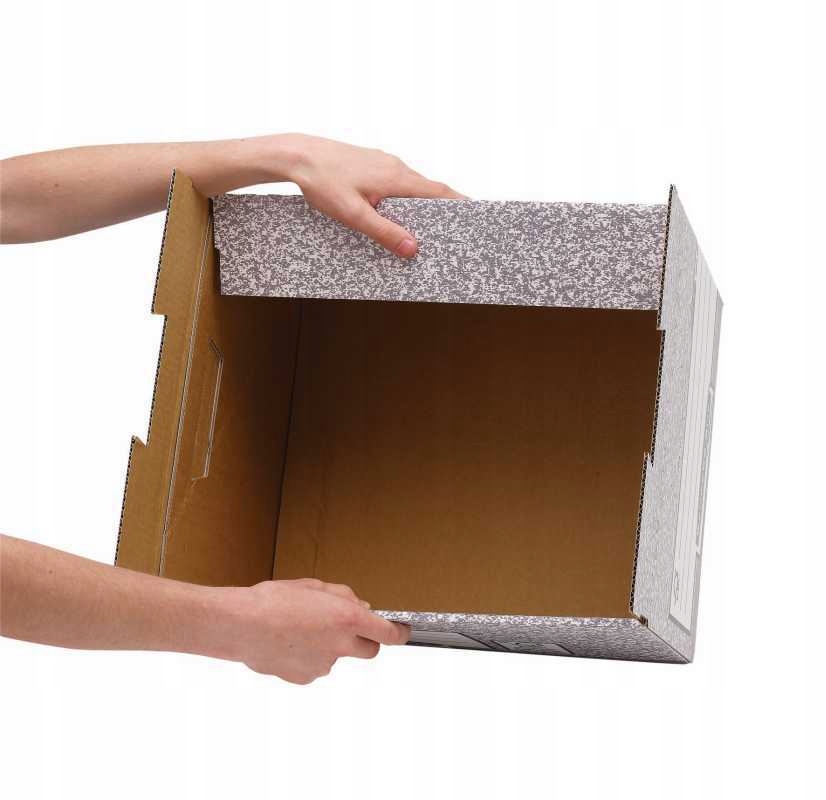 Міцна скринька, виготовлена з гофрованої дошки, дозволяє безпечно та зручно зберігати документи у файлах або палітурниках.