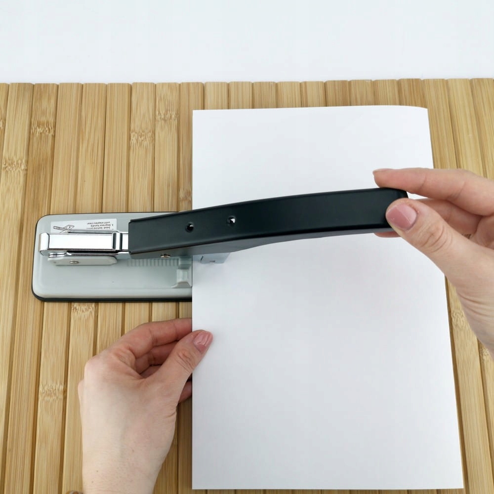 Надійний металевий офісний степлер, призначений для зшивання великих файлів. Скріплює 100 аркушів паперу за раз. Корисний у повсякденній роботі, незамінний у систематизації та сортуванні документів. Металевий механізм і рука. Протиковзка основа з пластику. Скоби з верхнім завантаженням.