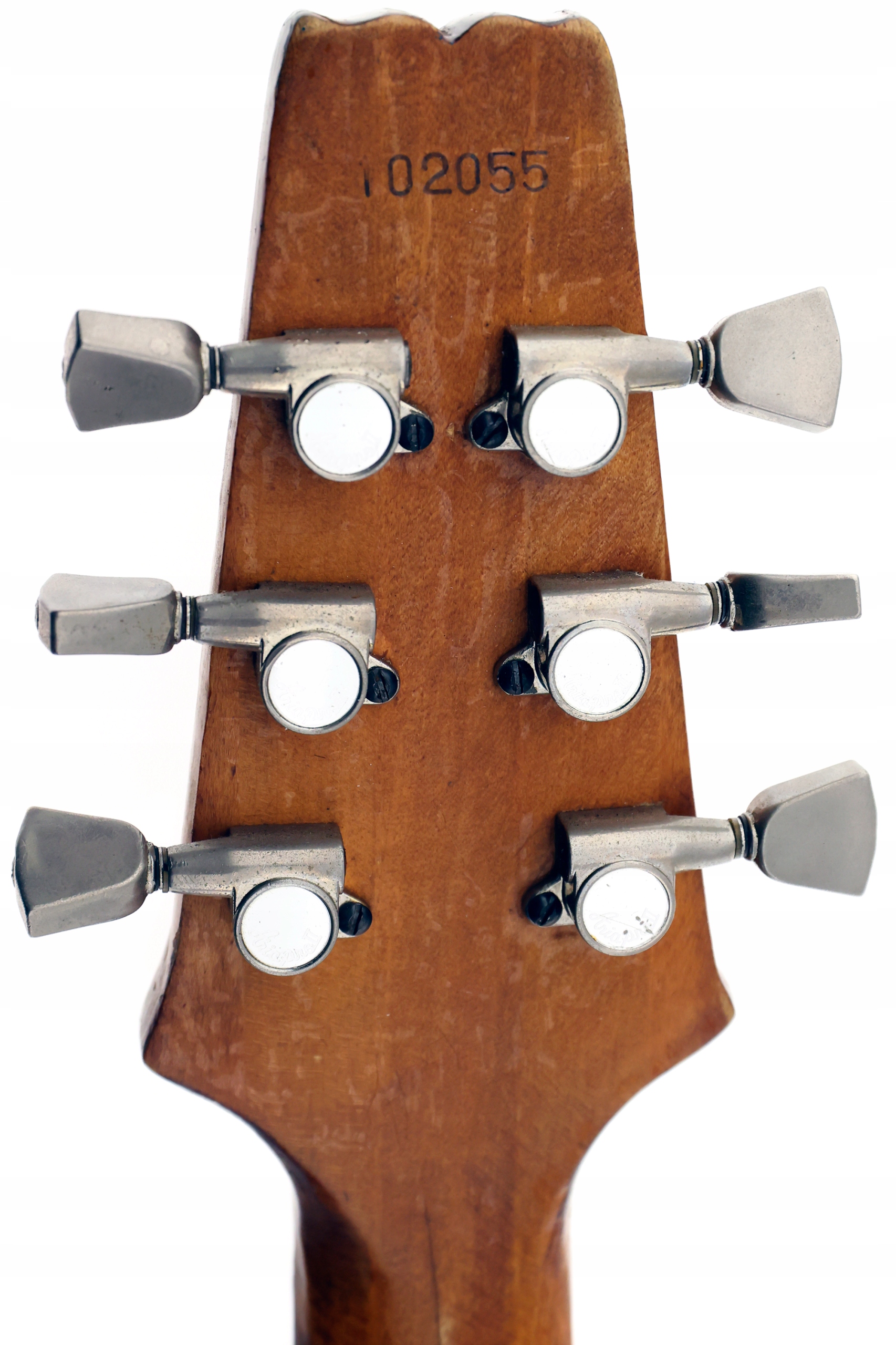 На задній частині гітари зробили пробки для отворів, тому що оригінальних не було; лади в хорошому стані - попередній власник законсервував інструмент нітролаком, але зроблено не ретельно але ефектно... дивіться фото.