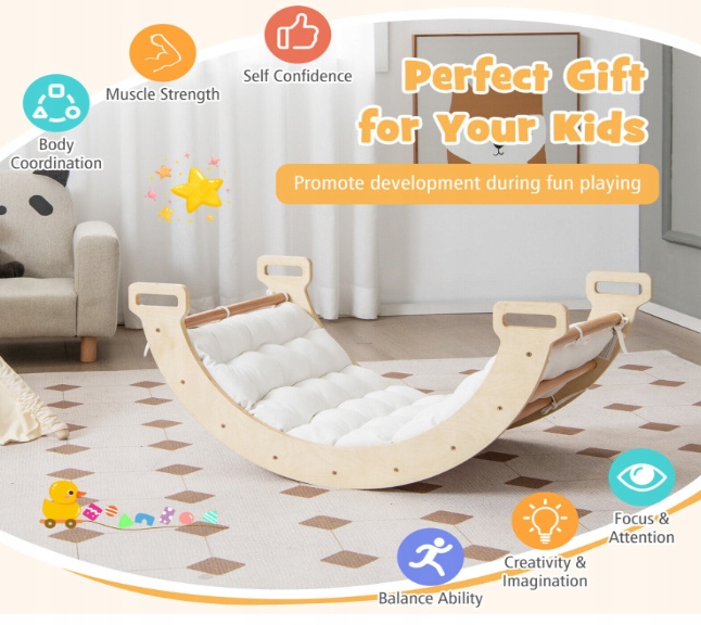 Ця качалка 2-в-1 — це більше, ніж іграшка, це інструмент для навчання, руху та відпочинку, який підтримує розвиток вашої дитини природним і безпечним способом.