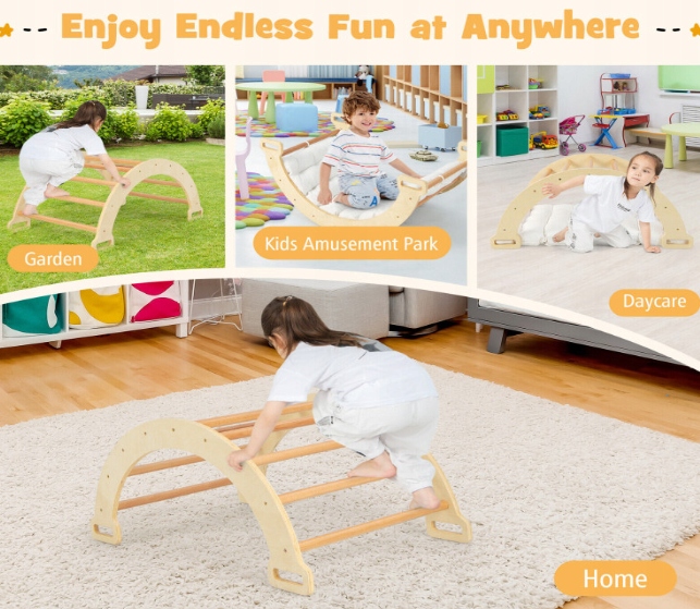 Ця унікальна гойдалка-арка була розроблена, щоб рости разом з вашою дитиною - її можна використовувати і як гойдалку для відпочинку, і як драбинку для лазіння. Це комплексне рішення, яке легко поєднує навчання балансу з радістю руху та спокоєм відпочинку.