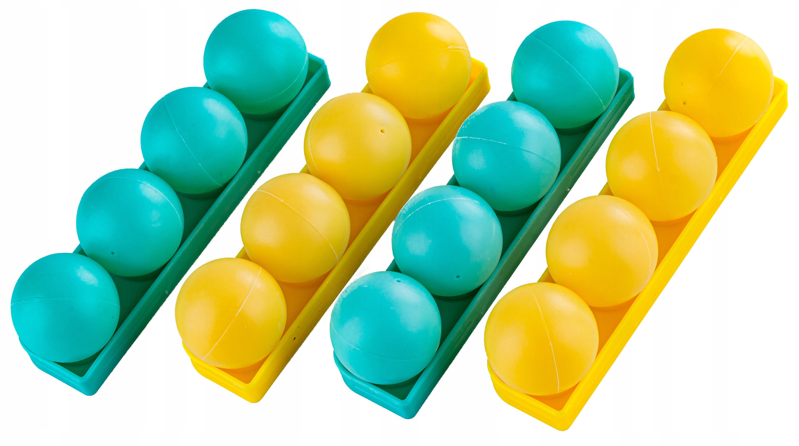 - Команди по черзі б’ють м’ячами, роблячи переконайтеся, що м’яч відскакує від столу та впаде у відповідний відсік на основі.