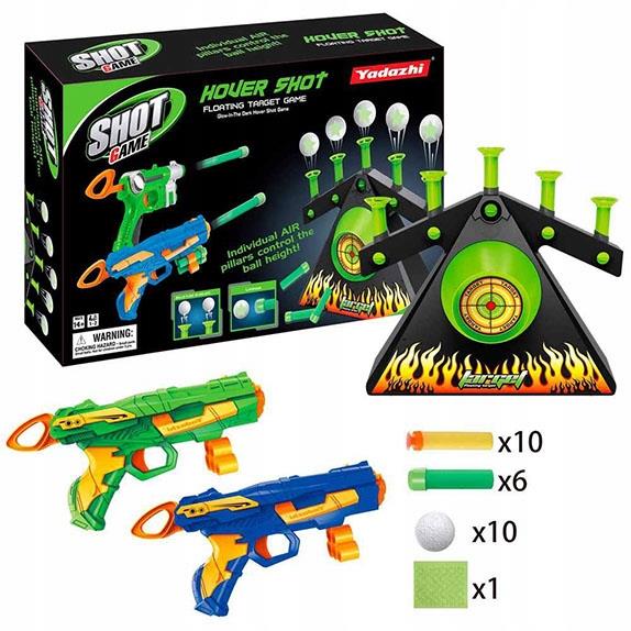 ⚙️У цій грі зі стрільбою по мішенях кожен гравець намагається вразити якомога більше цілей, але це не звичайні мішені! Увімкніть автомат Hover Shot 2.0, і 5 куль зависнуть у повітрі, несучи їх потоком повітря! В якості додаткового завдання вимкніть світло - кульки світяться в темряві!
