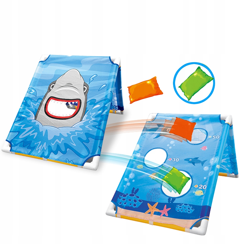 Представляємо наш набір дощок мішок з піском, ідеальний для дітей, які люблять активну та веселу гру! У цій грі кидають мішки з піском у пащу акули на дошці.