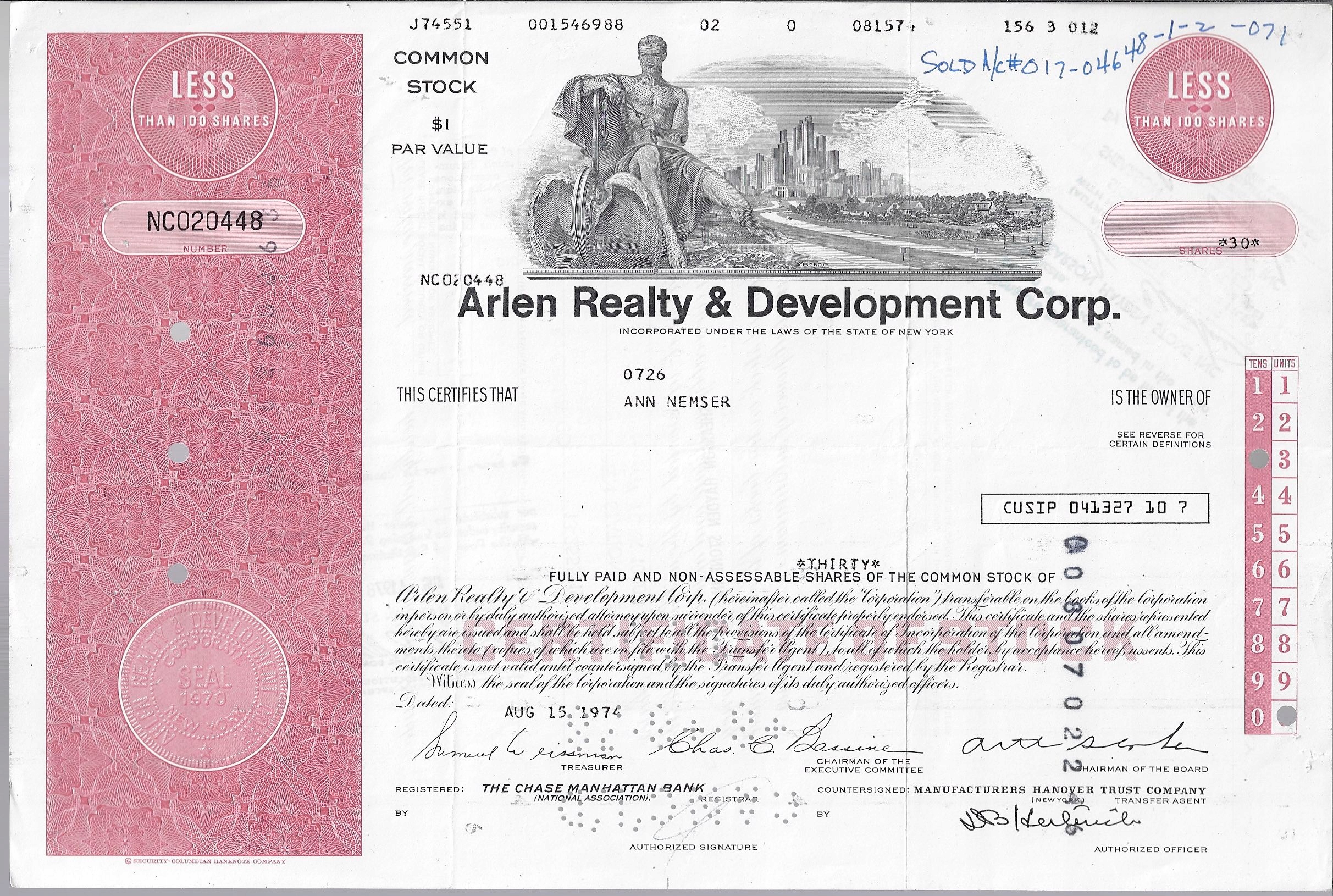 Оплачивая «Arlen Realty & Development Corp. 1974 Action / Bond» данный товар из каталога «цінні папери» вы можете быть уверены, что после оформления заказа, доставки в Украину, вы получите именно то, что заказывали, в оговоренные сроки и европейского качества.