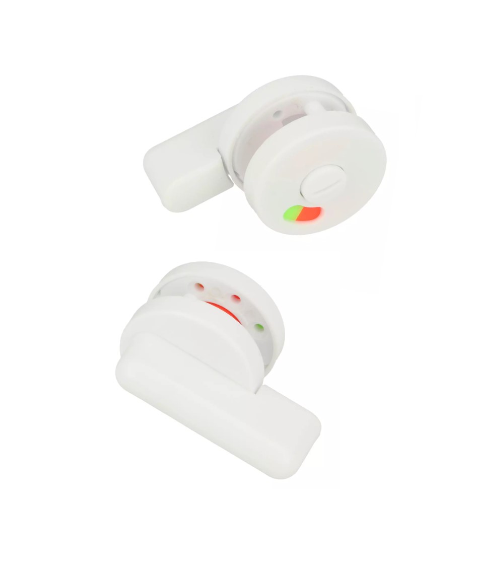 Замок дверний/замок (1шт) з поліпропілену з металевим штифтом. На замку є відмітка про зайнятість: червоний - каюта зайнята, зелений - каюта вільна. Можливість аварійного відкриття замка ззовні. Універсальна конструкція замка дозволяє використовувати його як для правих, так і для лівих врізних дверей.