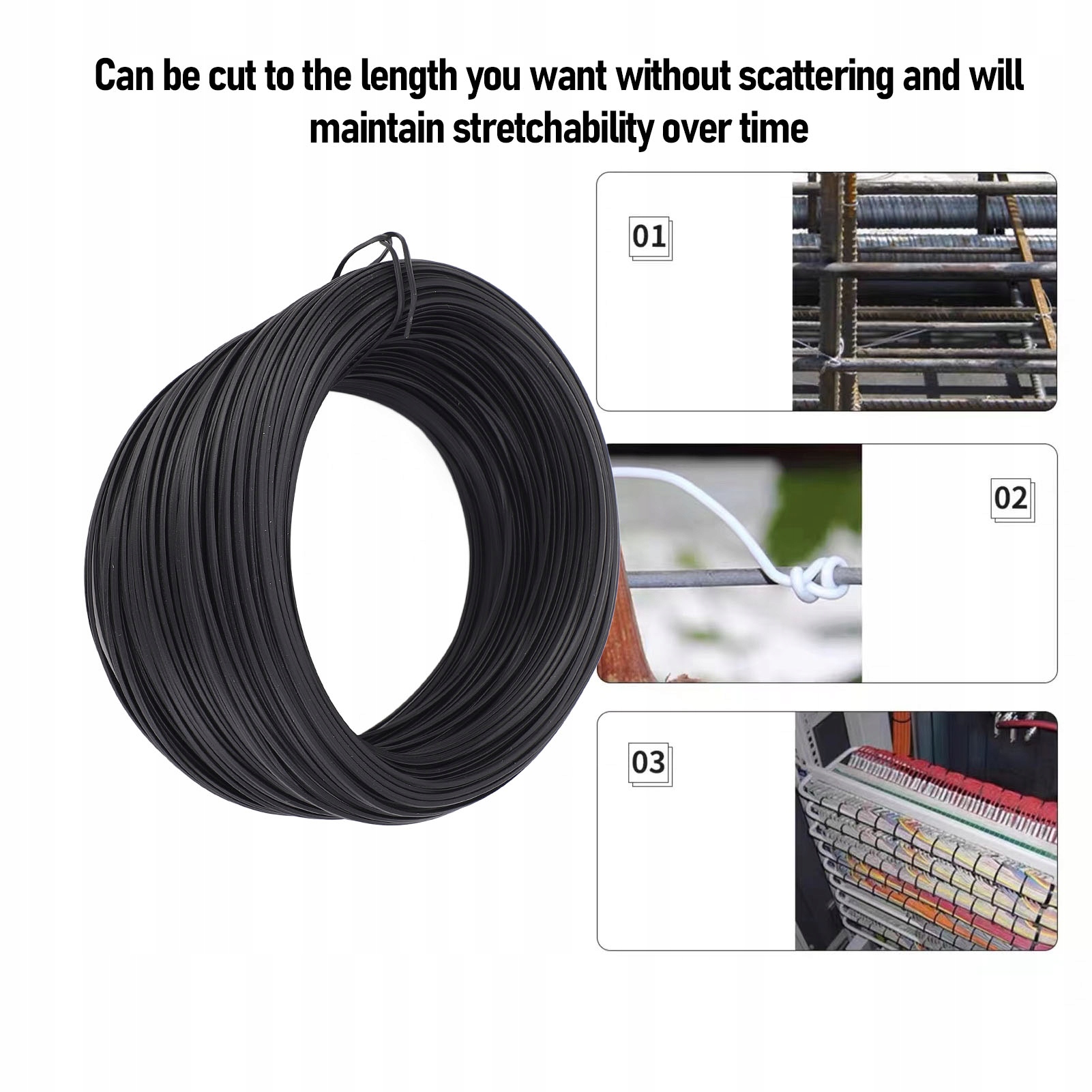 4. Універсальний та багаторазовий: цей дріт виготовляється з краватки, що забезпечує багаторазове використання, не втрачаючи своєї ефективності. Його м'якша композиція полегшує обробку, ніж традиційні металеві кабелі, розміщуючи широкий спектр застосувань, від ефективного захисту рослин до пакувальних матеріалів.