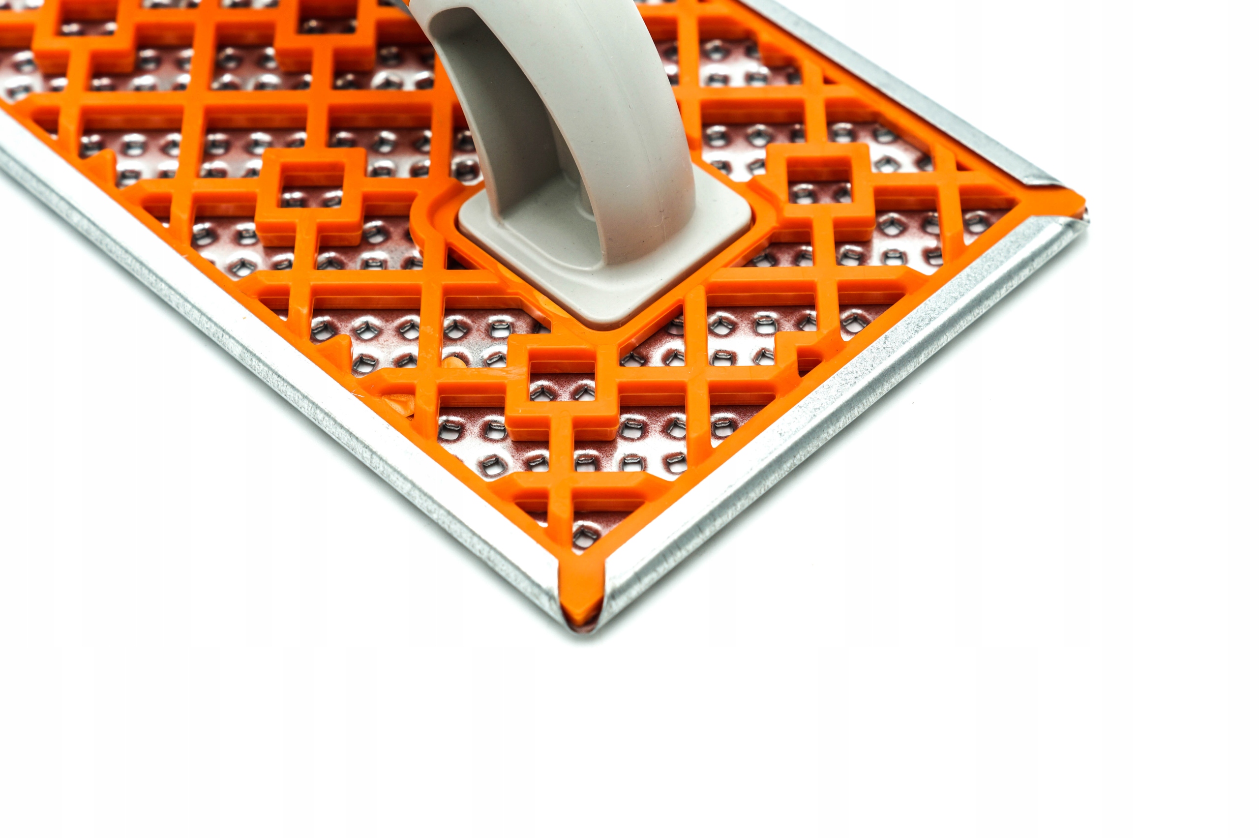 Кельма з пластику, посилена верхня частина, з решіткою, яка має великі отвори для зливу стертого матеріалу. Робоча частина терки виготовлена з оцинкованої листової сталі з гострими отворами.