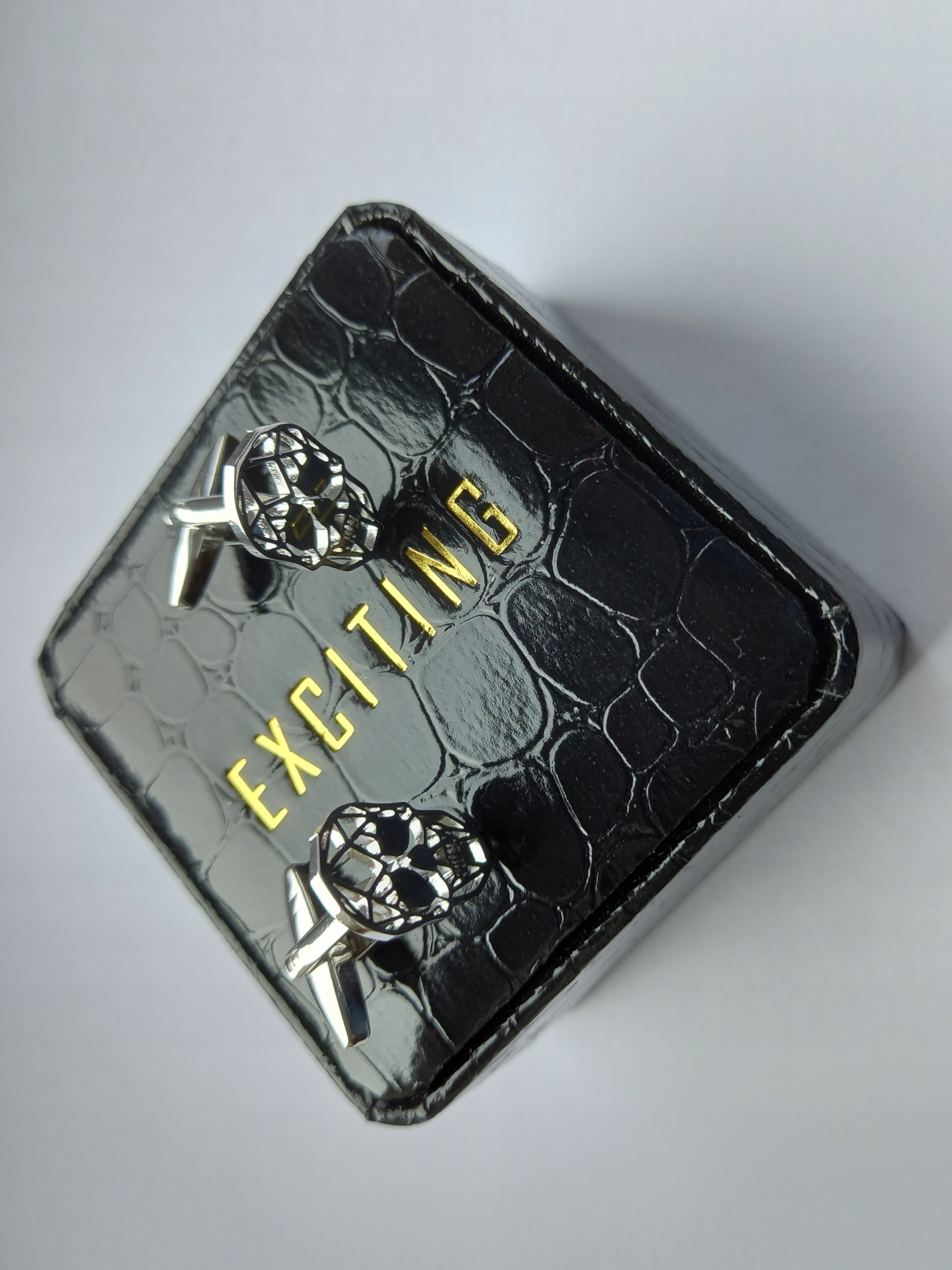 - Запонки упаковані в акуратну картонну коробку чорного кольору розміром 70x70x40 мм.