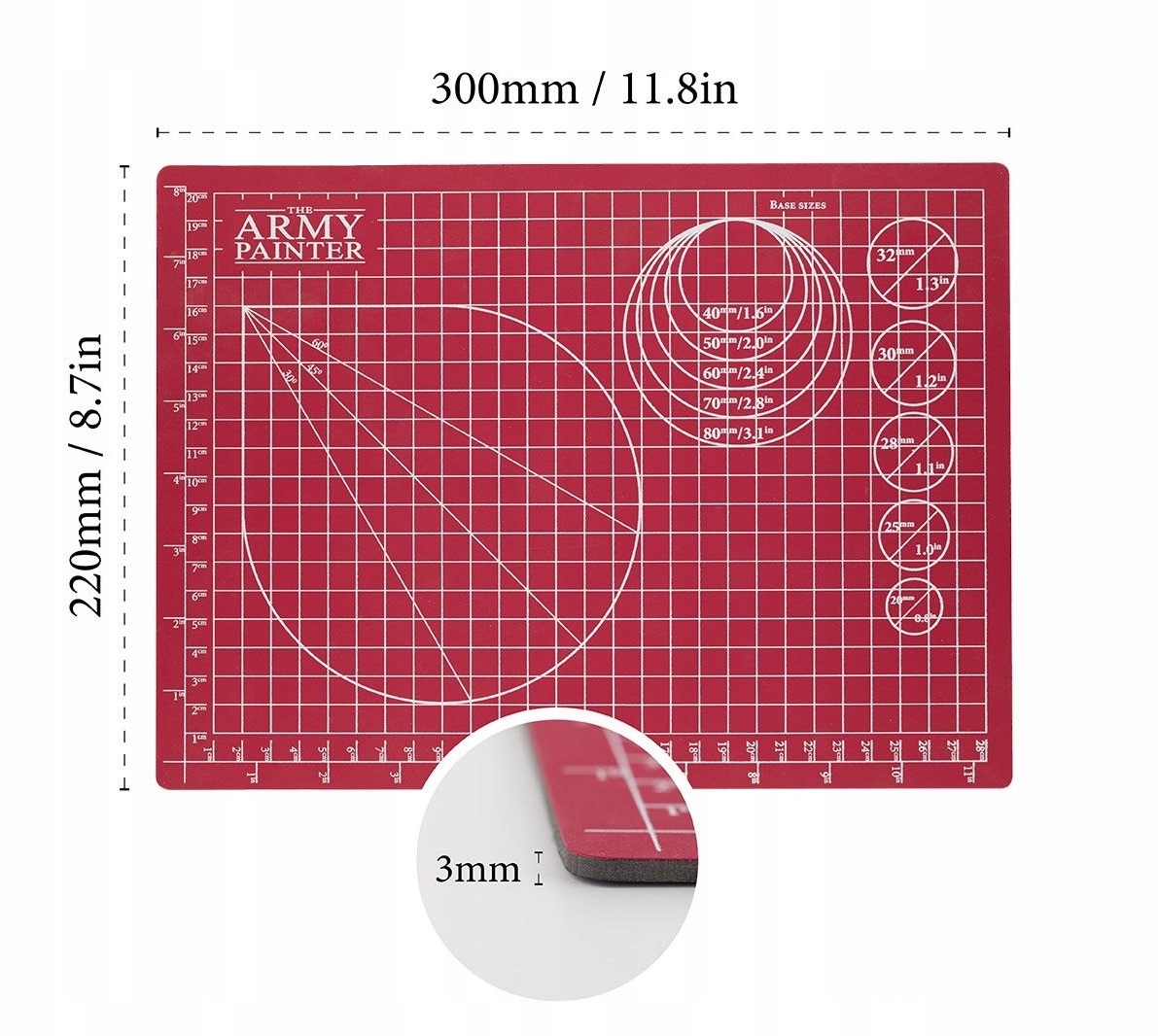 Килим для різання виготовлений з міцного матеріалу з ПВХ і служить прокладкою для всіх модельних робіт, складання та перетворення ескізів для війних ігор. Це захищає ваш стіл від непотрібних збитків. Матовий килимок для самості відновлення регенерується і має лінії різання/вимірювання, що дозволяє точно працювати.