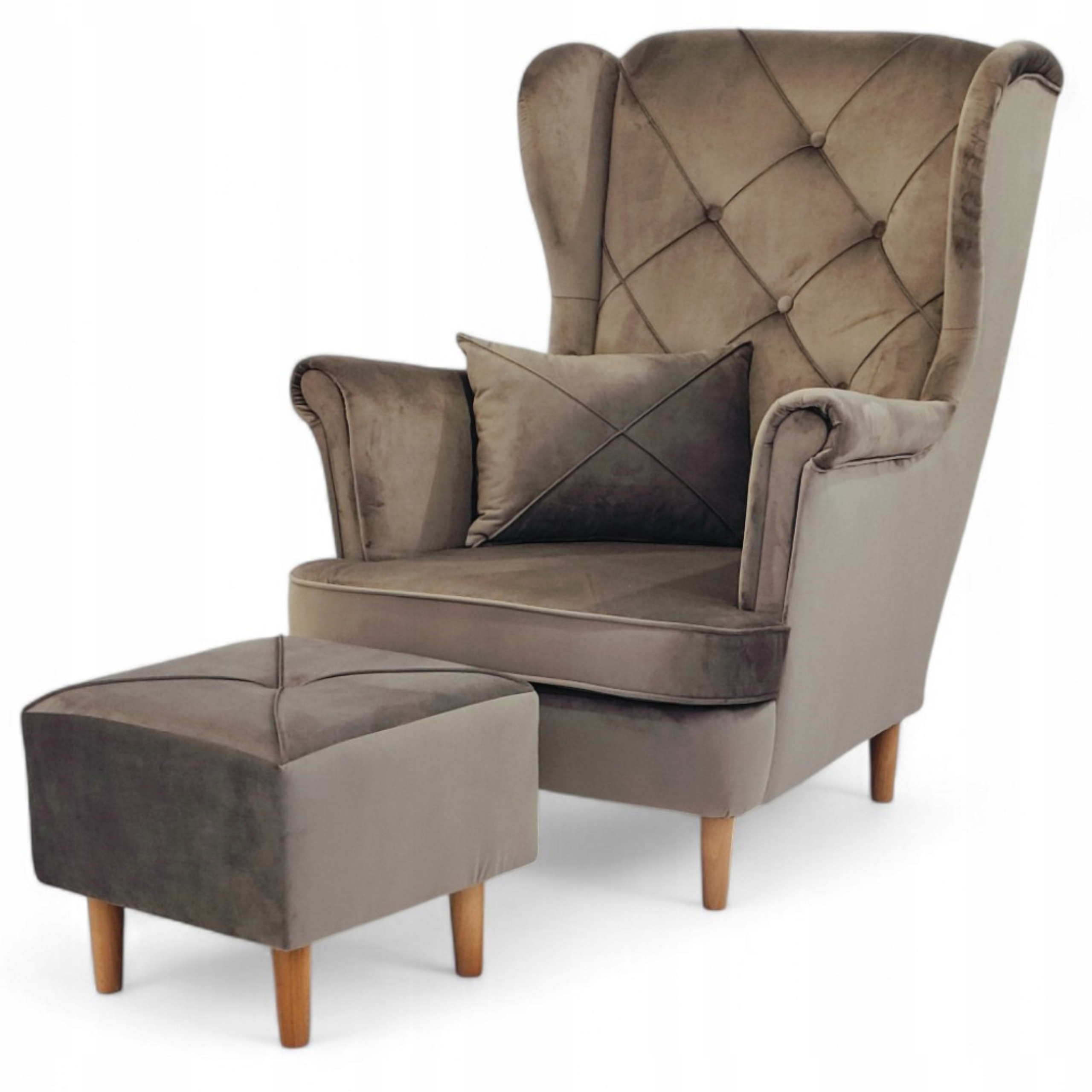 Армор Каро крісло з прошиванням до вітальні з сірою подушкою для пішки