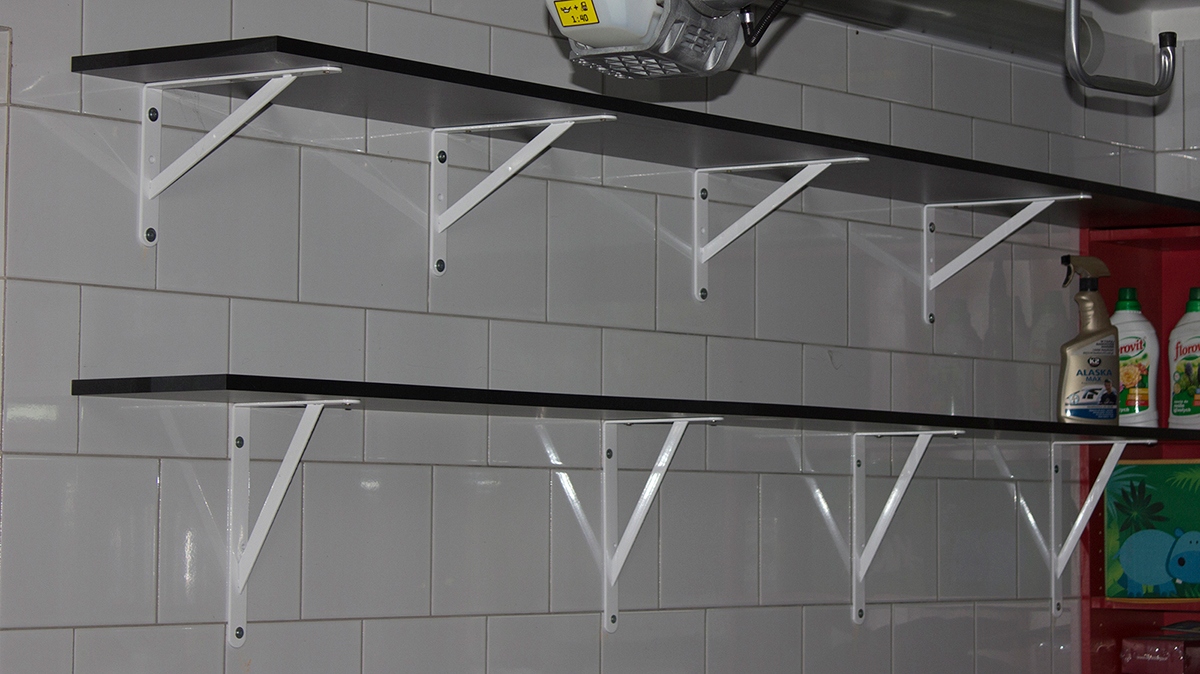 кронштейн, виготовлений зі сталі, посилений. Ідеально підходить для полиць у гаражі або коморі.